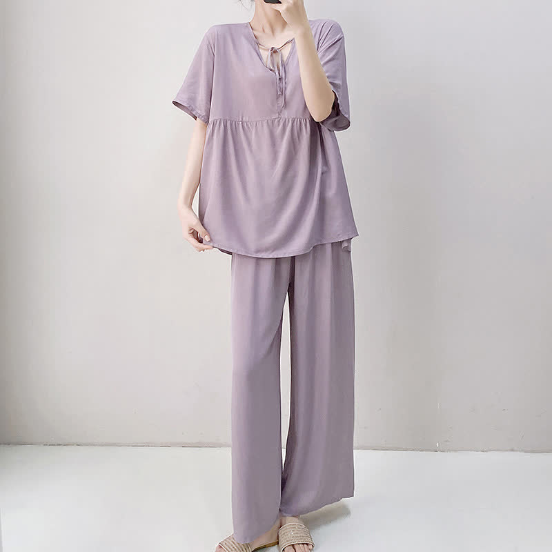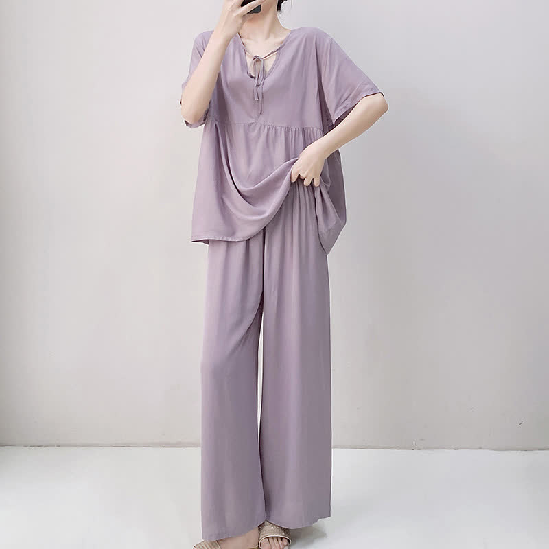Ensemble de vêtements de détente à imprimé floral et feuilles avec lien sur le devant