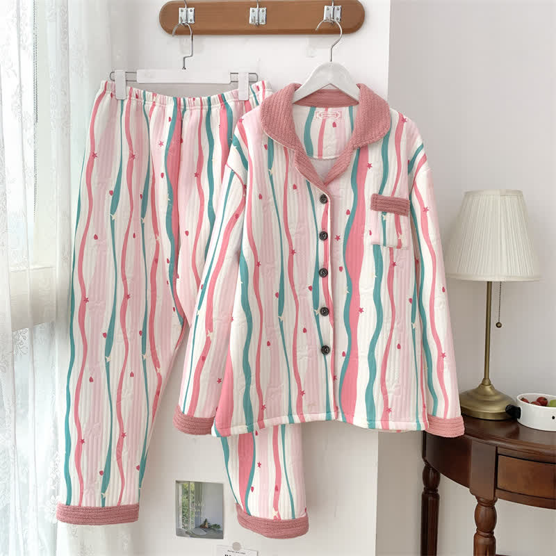 Cet ensemble de vêtements de nuit est conçu pour les grandes tailles et offre une silhouette décontractée pour une liberté de mouvement optimale et une coupe flatteuse. Avec des manches longues et un pantalon long, il est parfait pour les nuits fraîches, pour se détendre à la maison et convient également aux femmes enceintes et aux femmes en phase de récupération.