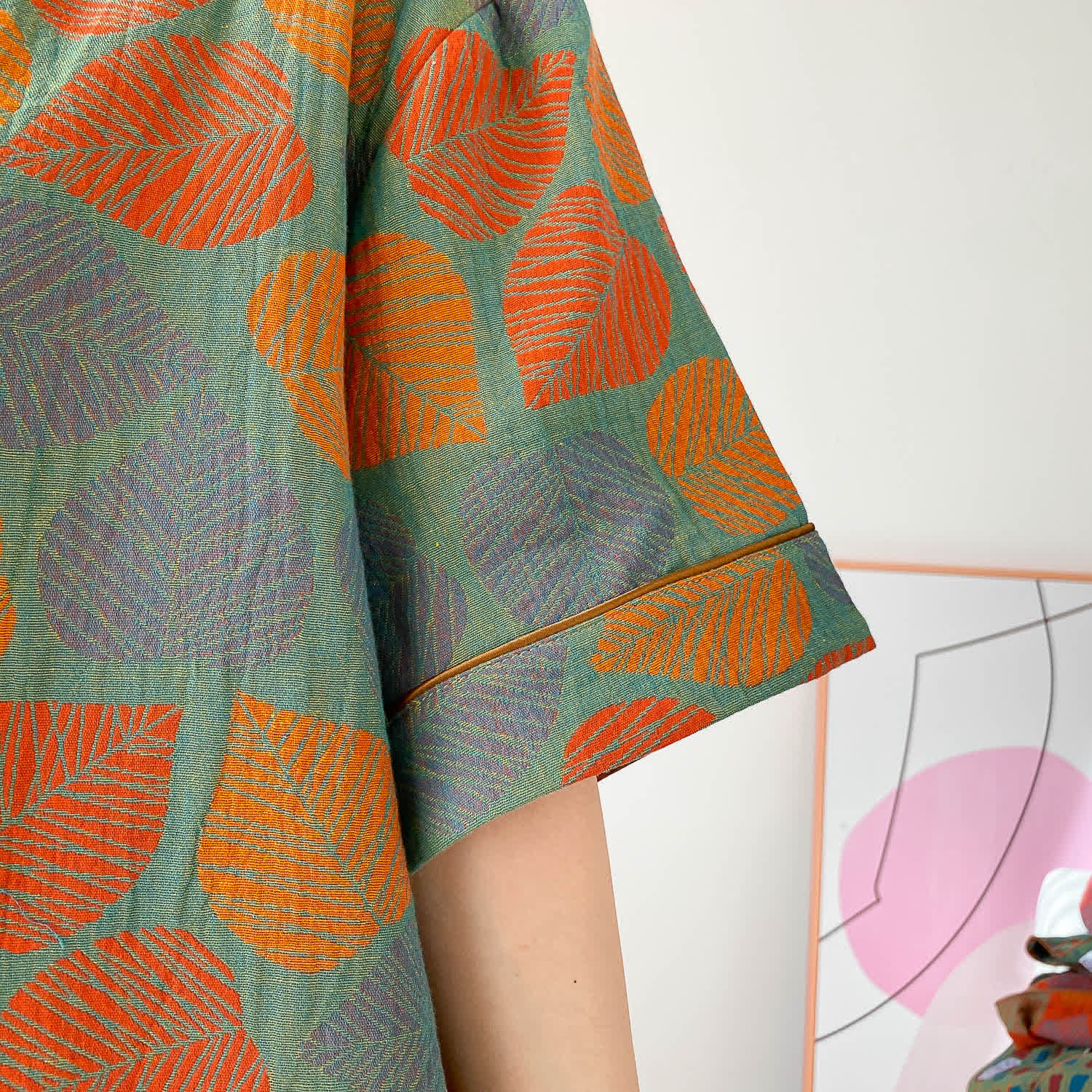 Ensemble de vêtements d'intérieur à manches courtes et imprimé jacquard vintage grande taille