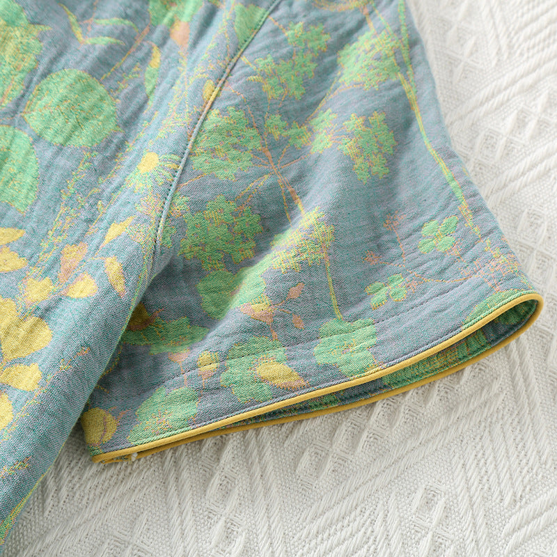 Offrez-vous une soirée mode et cosy dans notre pyjama chic en gaze de coton. Offrant le mélange parfait de détente et de mode, cet ensemble comprend un haut à manches courtes et un short assorti. Avec son motif floral exquis, il est également parfait comme cadeau pour vos proches et garantit à la fois mode et confort.