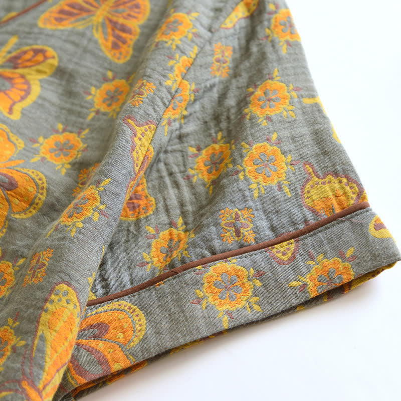 Offrez-vous une nuit de sommeil élégante et confortable avec notre pyjama chic en coton avec double couche de gaze. Cet ensemble allie habilement confort et élégance et se compose d'un haut à manches courtes et d'un short assorti au joli motif papillon. C'est le cadeau parfait pour vos proches et offre un mélange harmonieux de mode et de confort.