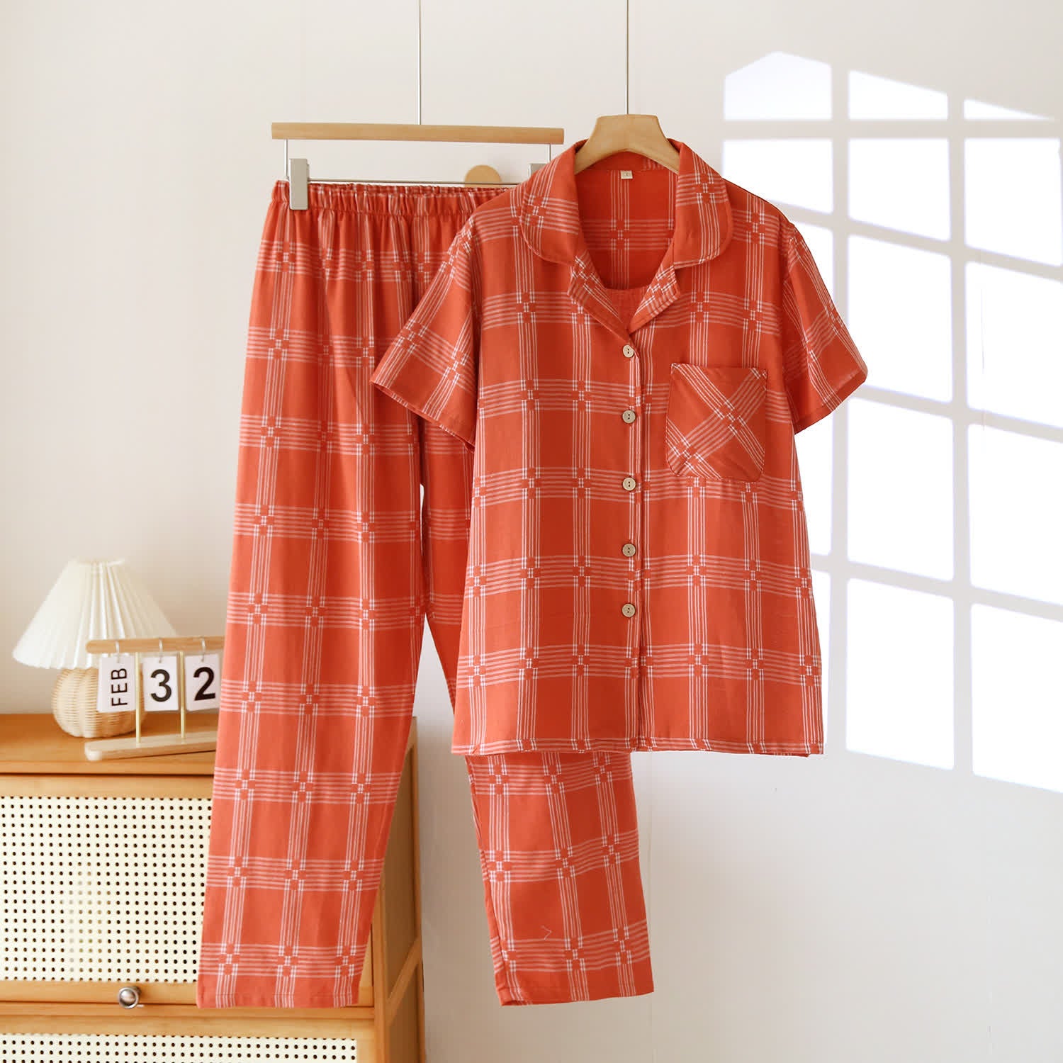 Ensemble de vêtements d'intérieur unisexe en coton teint à carreaux