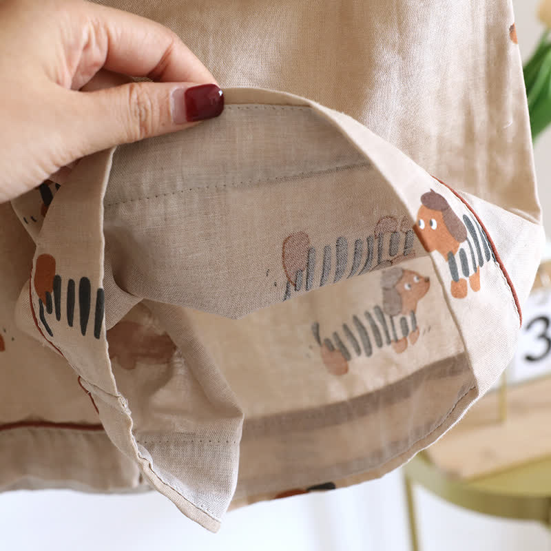 Cet ensemble pyjama en coton respirant offre un confort et une douceur exceptionnels. Le haut à manches courtes et le short assorti présentent des illustrations amusantes de teckels – parfait pour les couples qui aiment leurs amis à quatre pattes ! Idéal pour des soirées cosy, des marathons de films ou des réunions sur le thème des chiens.