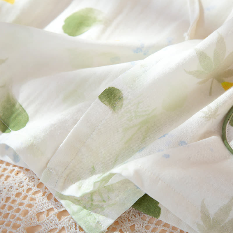 Ensemble pyjama ajustable en gaze de coton imprimé feuilles avec kimono