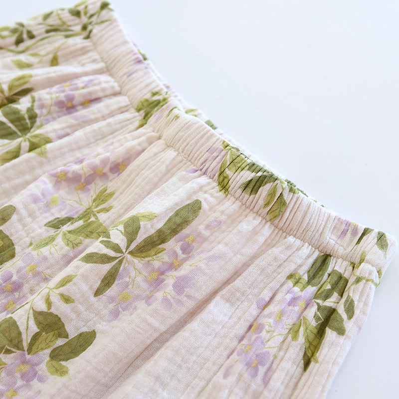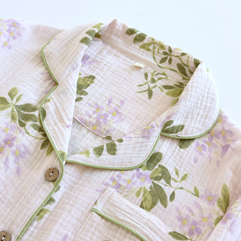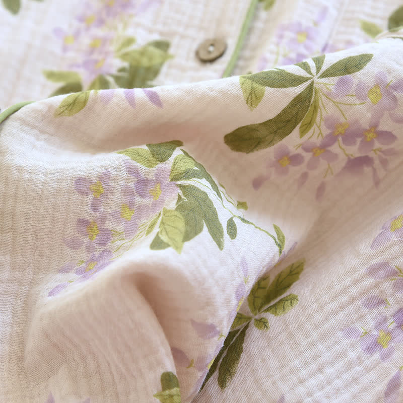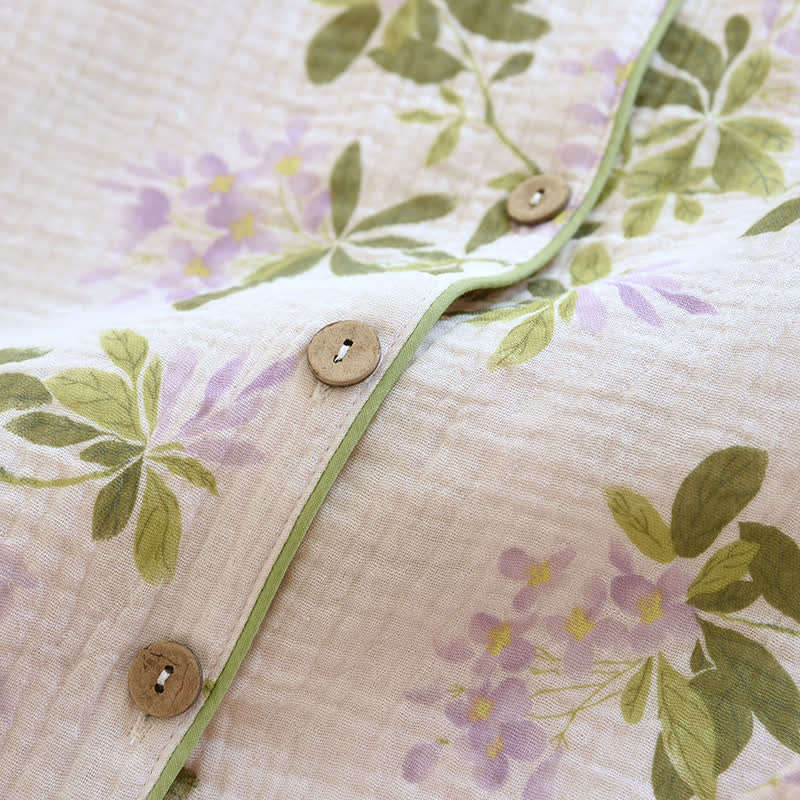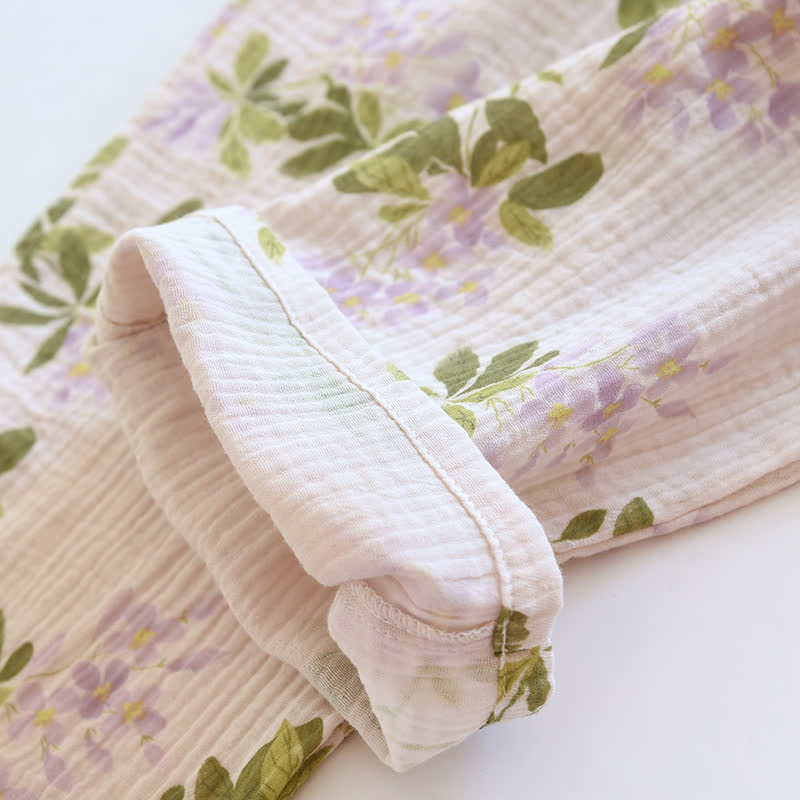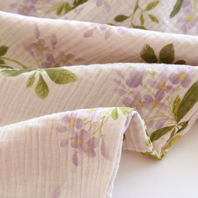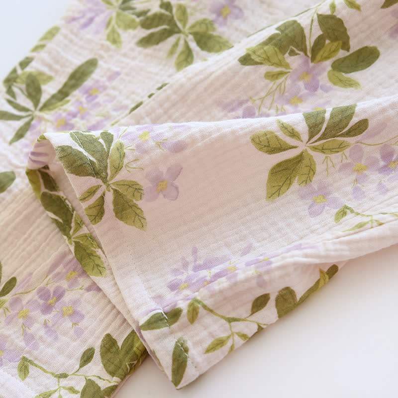 Cette pièce de détente combine magnifiquement des styles classiques et modernes avec des motifs floraux pour créer un look rafraîchissant et élégant. Fabriqué en pur coton avec deux couches de gaze, il offre une sensation douce, confortable et aérée et est parfait pour se détendre au printemps, en automne, en hiver ou en été.