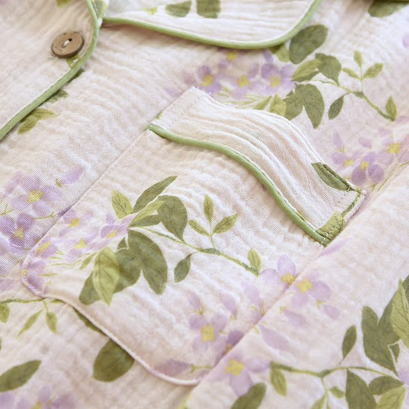 Ensemble pyjama confortable en gaze de coton à manches longues