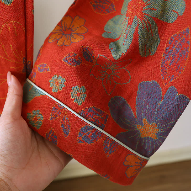 Ensemble pyjama en coton à manches courtes avec motif floral jacquard