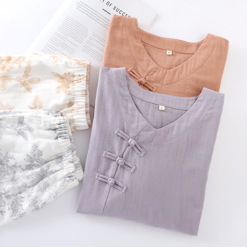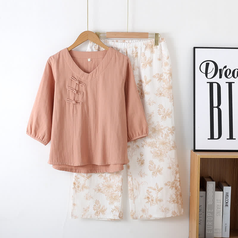 Ensemble pyjama en coton à motif floral et manches trois-quarts