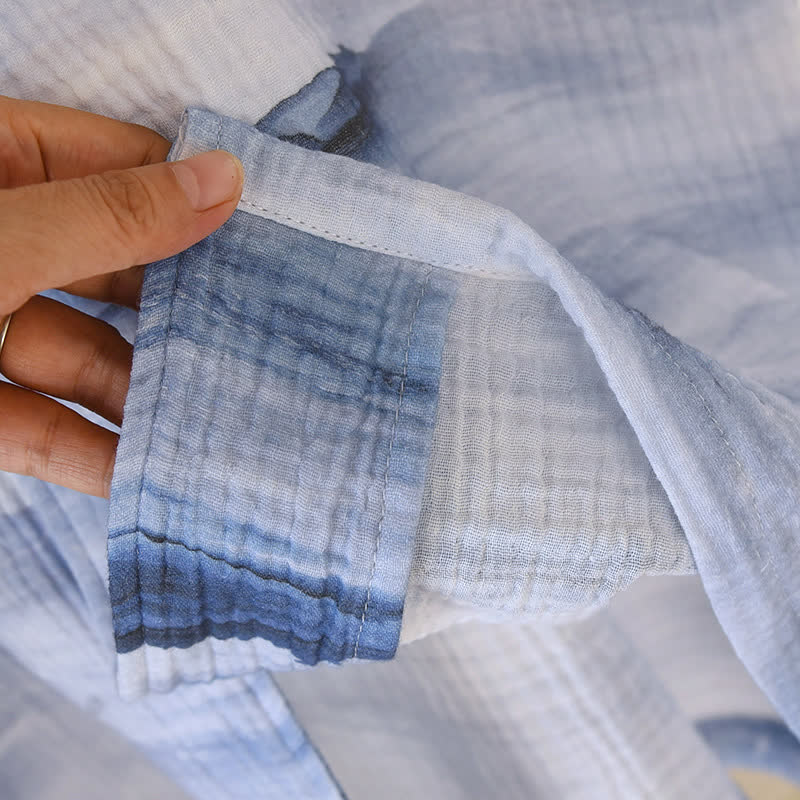 La palette de couleurs douces et neutres crée une atmosphère apaisante dans votre maison et vous permet de vous détendre avec style. Cet ensemble pyjama en gaze de coton de haute qualité est léger, respirant et incroyablement doux pour la peau, assurant un sommeil réparateur.