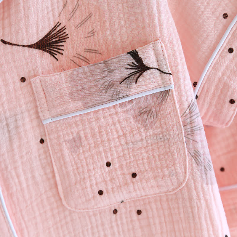 Ensemble pyjama en gaze de coton avec feuilles de ginkgo (3 pièces)