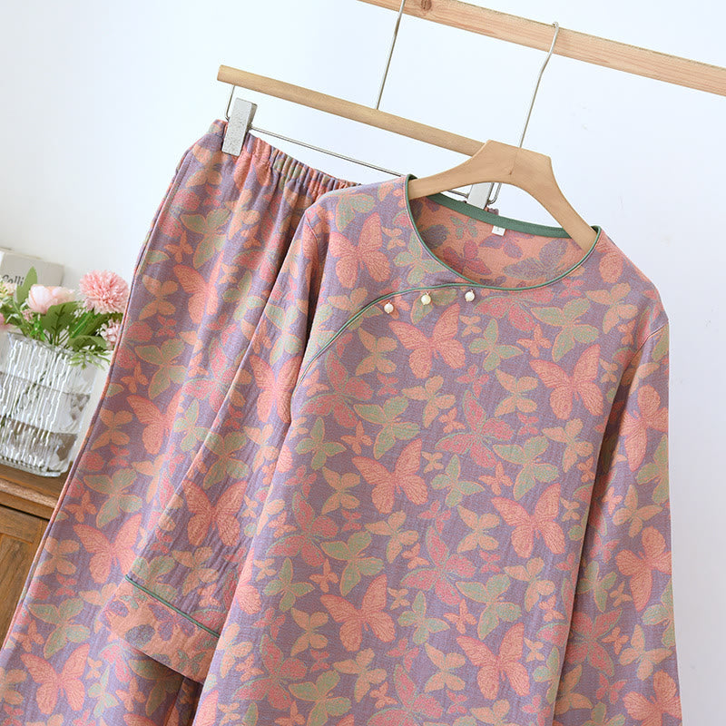Ensemble pyjama en gaze de coton avec papillon jacquard