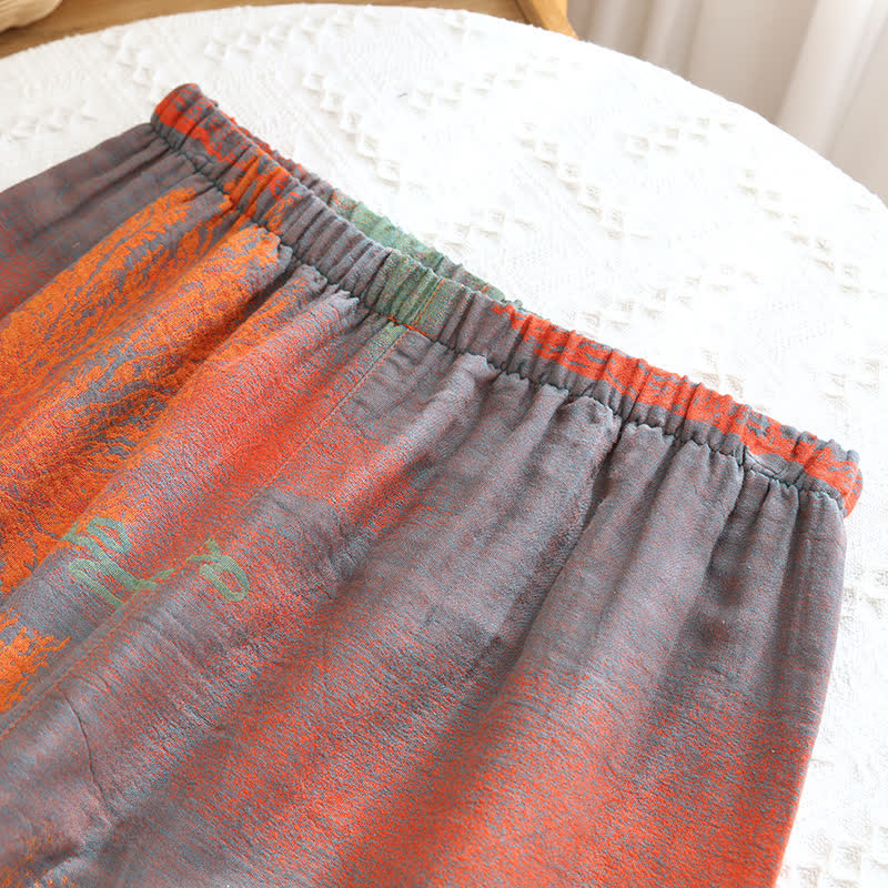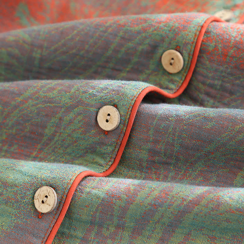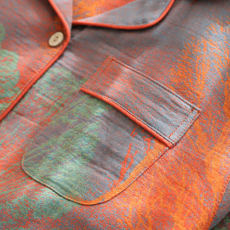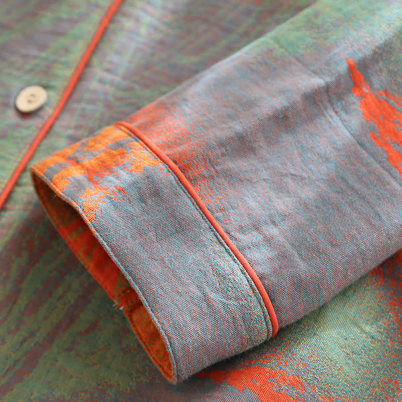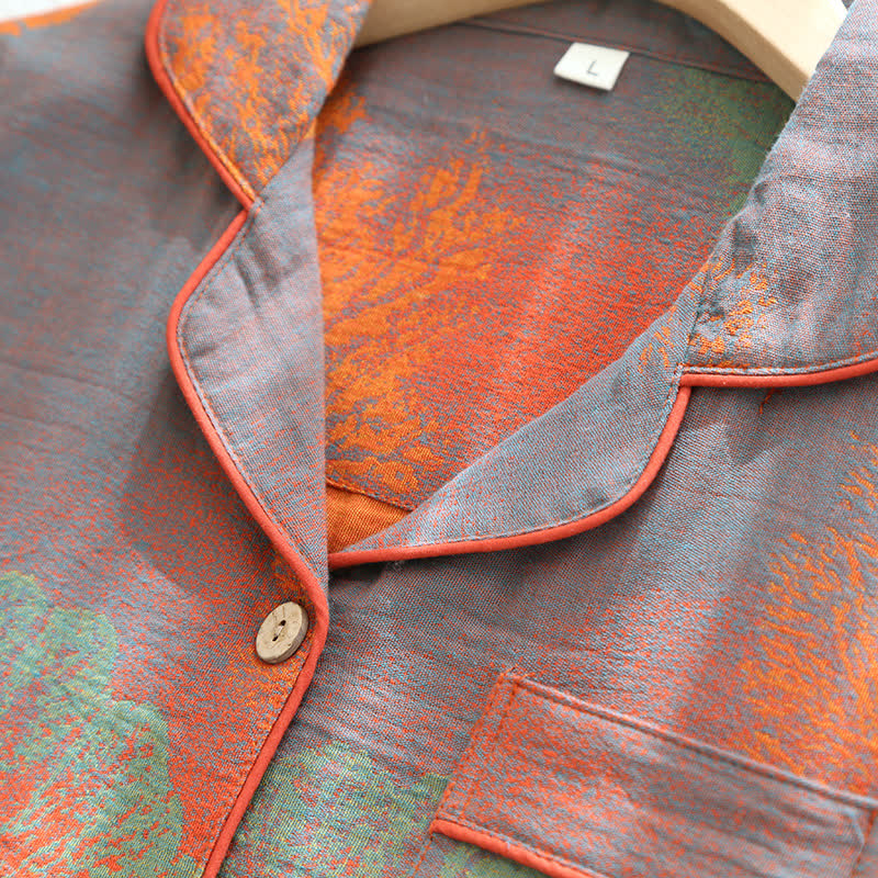 Ensemble pyjama en gaze de coton jacquard avec décolleté à revers
