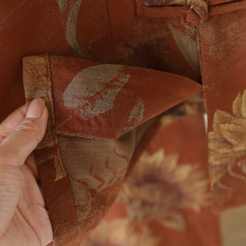 Ensemble pyjama rétro à col montant et motif tournesol pour couple