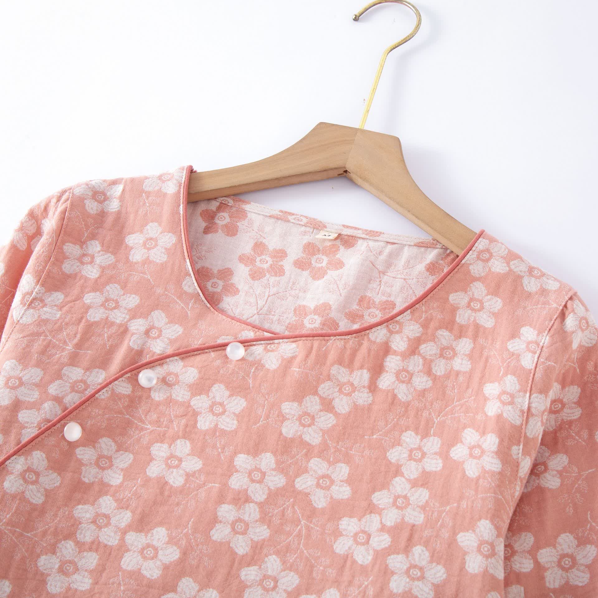 Ensemble pyjama rétro en jacquard de coton teint en fil à motif floral