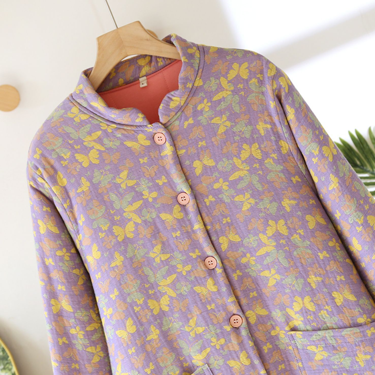 Ce haut de pyjama à manches longues présente un design élégant et pastoral et convient aussi bien à la maison qu'aux sorties décontractées. Il est fabriqué à 100 % en pur coton et offre un excellent confort et une excellente respirabilité pour vous garder à l'aise toute la journée. La construction plus épaisse offre une chaleur supplémentaire et la rend parfaite pour les journées plus fraîches et les soirées fraîches.