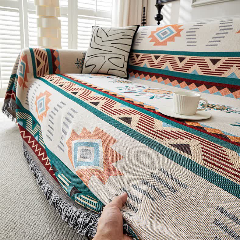 Cette housse de canapé offre une interprétation fraîche des designs classiques et surprend par sa combinaison de couleurs élégante et intemporelle. Il respire la qualité sans être envahissant et attire le regard dans le salon. Les pompons exquis en fil de coton tissé confèrent au canapé une touche dynamique et améliorent l'impression générale. Réversible et polyvalent, il s'adapte parfaitement des deux côtés et offre deux styles différents.