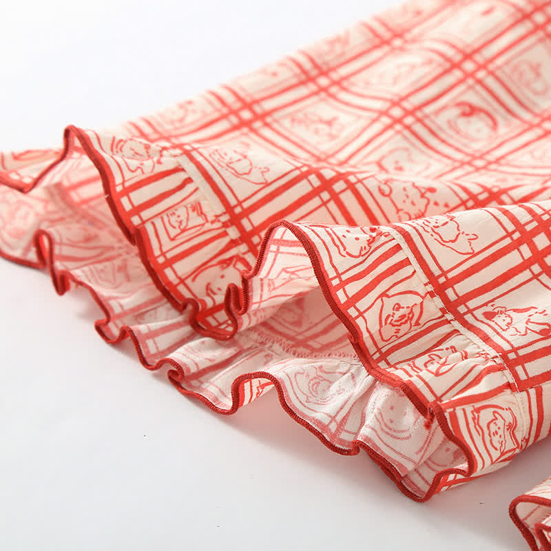 Cette tenue de nuit en gaze de coton ornée d'un joli motif à losanges est disponible en deux versions charmantes : une chemise de nuit et un ensemble détente confortable. La version détente arbore de jolis motifs animaliers pour une touche ludique. Confectionnée en gaze de coton respirante, elle est légère et idéale pour des moments de détente et de confort, de jour comme de nuit.