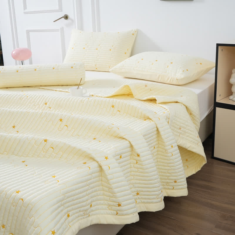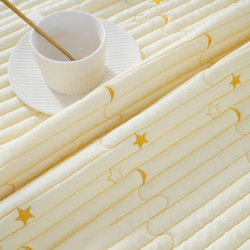 Avec ses motifs complexes de lune et d'étoiles, cette literie promet une esthétique distinctive et luxueuse.
