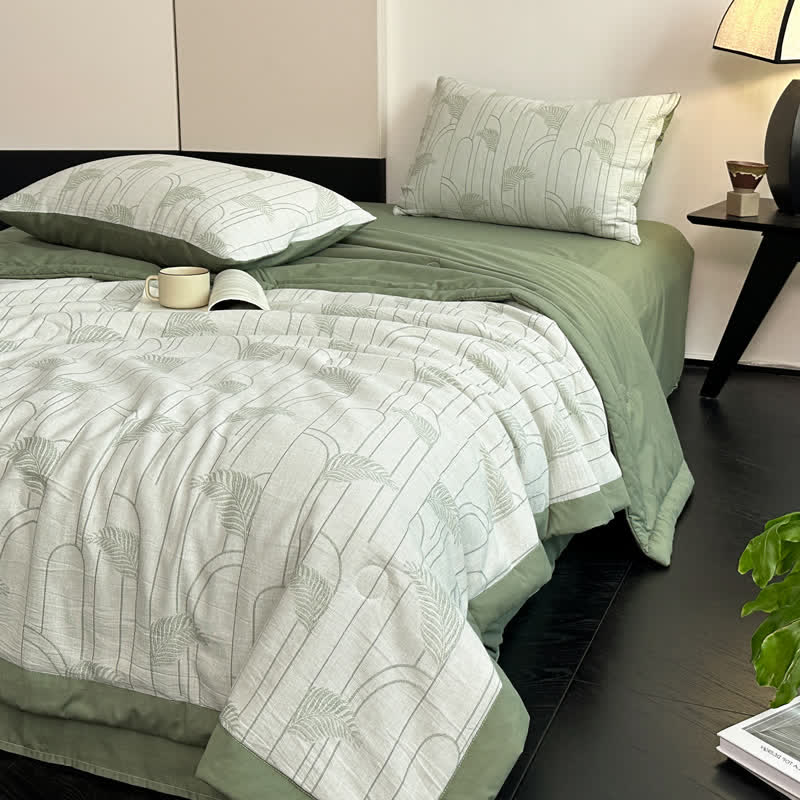 Linge de lit léger en gaze de coton avec motif de feuilles rustiques