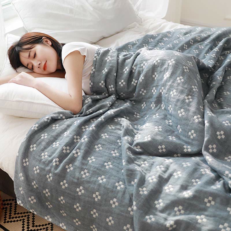 Il est composé de trois couches de coton, est léger et parfait comme couverture d'été. Il peut facilement être emporté à l'extérieur.