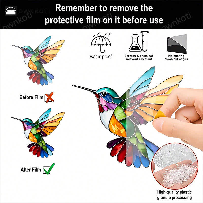Cette décoration suspendue présente un oiseau magnifiquement détaillé dans une variété de couleurs qui égayera vos fenêtres et rehaussera la décoration de votre maison. La pièce légère en acrylique de haute qualité est robuste et résistante aux intempéries, ce qui la rend parfaite pour une utilisation intérieure et extérieure.