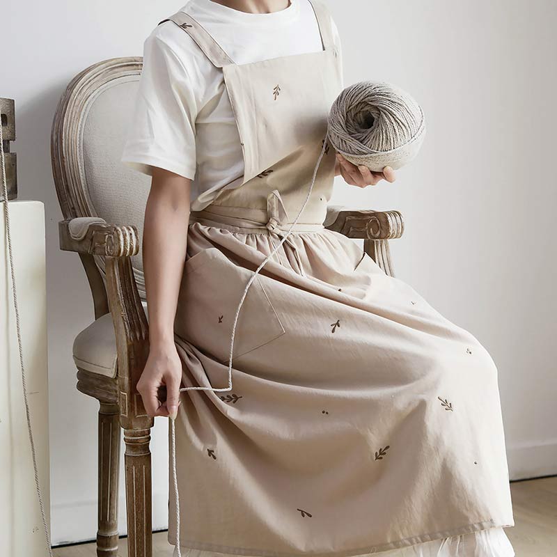 Ownkoti – Tablier en coton avec broderie florale et poches