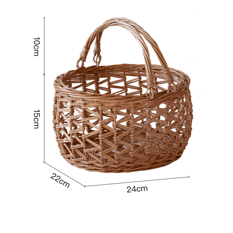 Ce panier en osier est idéal pour organiser les légumes, les fruits, les œufs et divers articles ménagers. Grâce à ses poignées robustes, il est facile à transporter et à transporter, ce qui le rend adapté à une utilisation intérieure et extérieure. Que ce soit dans la cuisine, la salle à manger ou lors d'un pique-nique, ce charmant panier ajoute un charme rustique à votre intérieur tout en gardant vos affaires organisées. Sa conception robuste garantit des années de durabilité et en fait un ajout pratique à n'importe quelle maison.