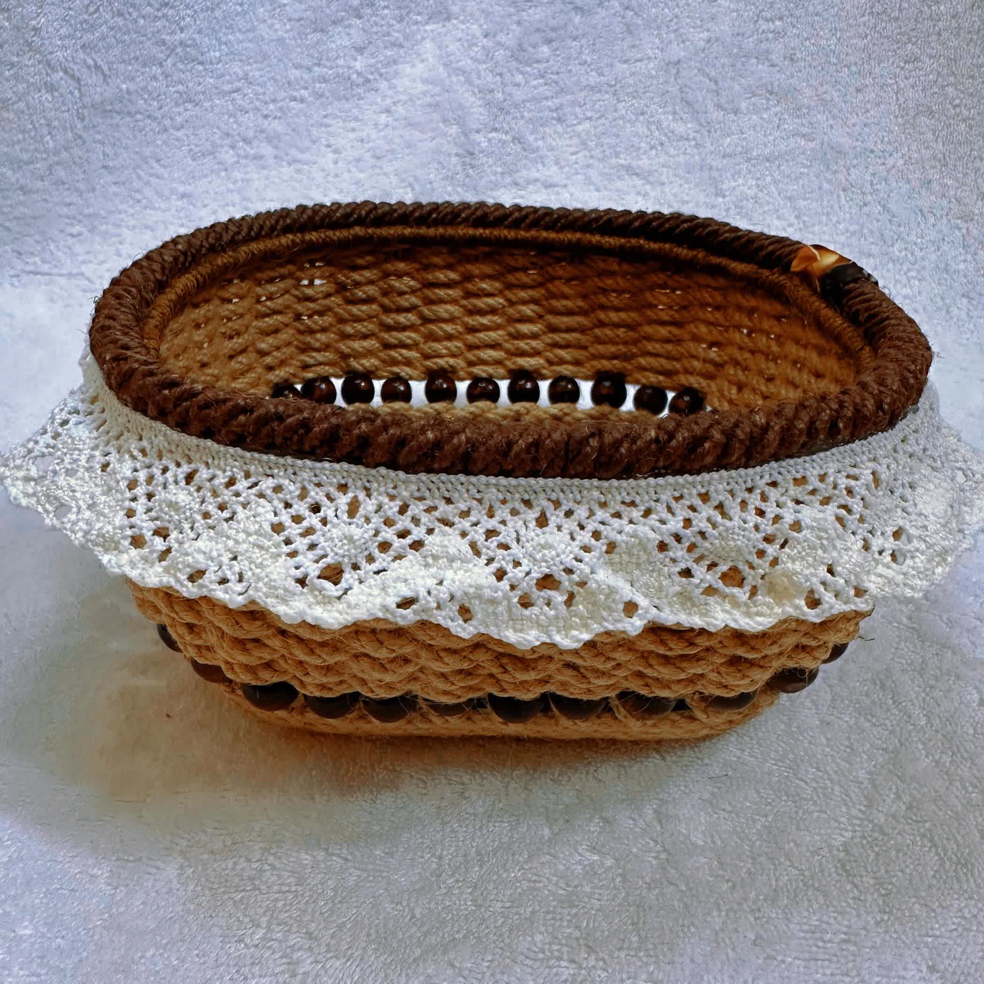 Panier de rangement fonctionnel avec bordure en dentelle florale