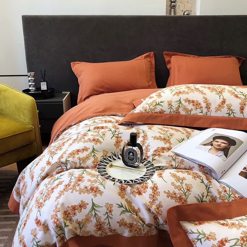Parure de lit de style pastoral en coton doux et brossé (4 pièces)