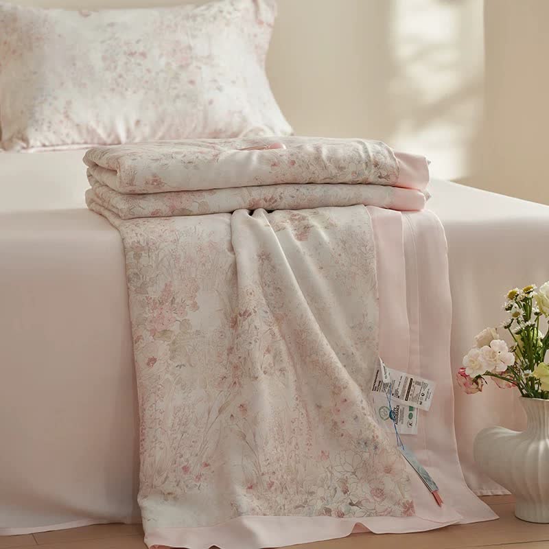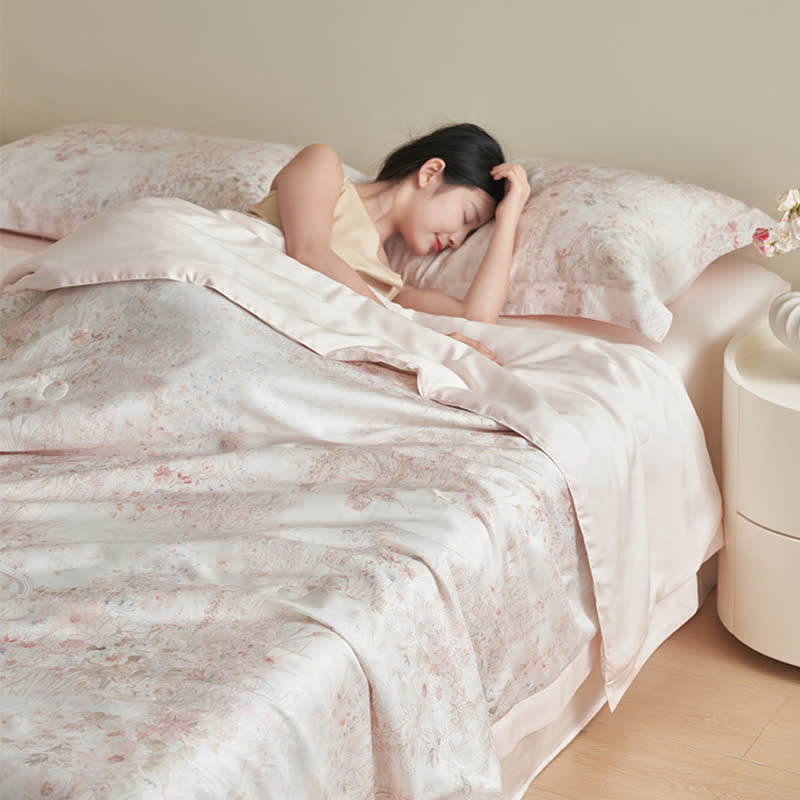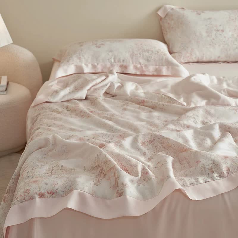 Parure de lit d'été à fleurs roses pastorales (4 pièces)