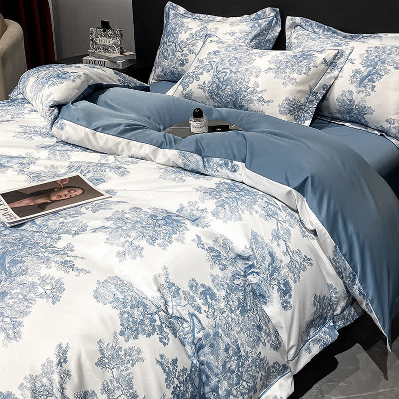 Parure de lit d'été respirante à motif floral rustique (4 pièces)