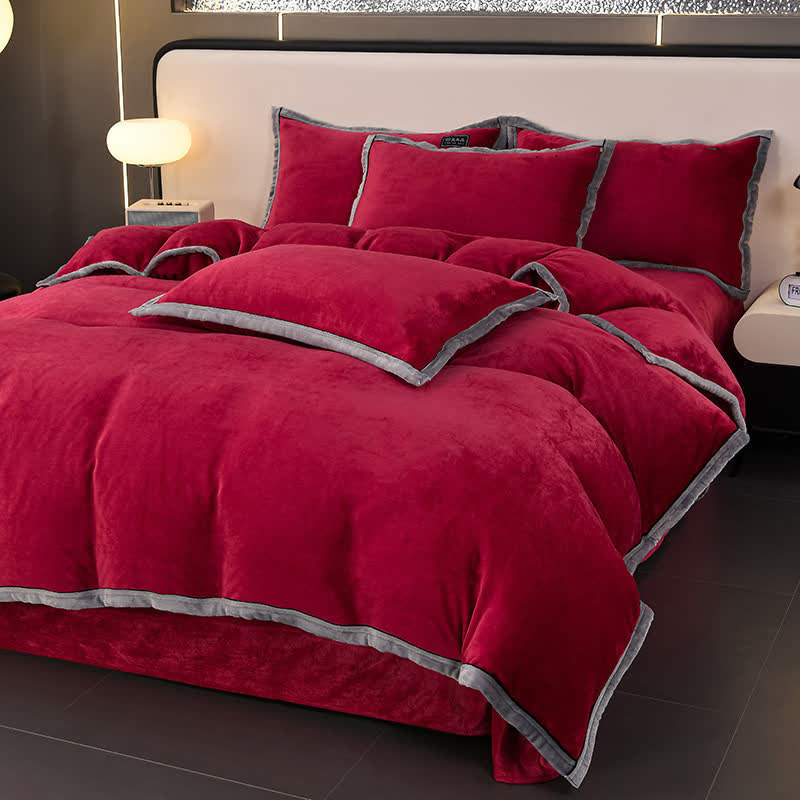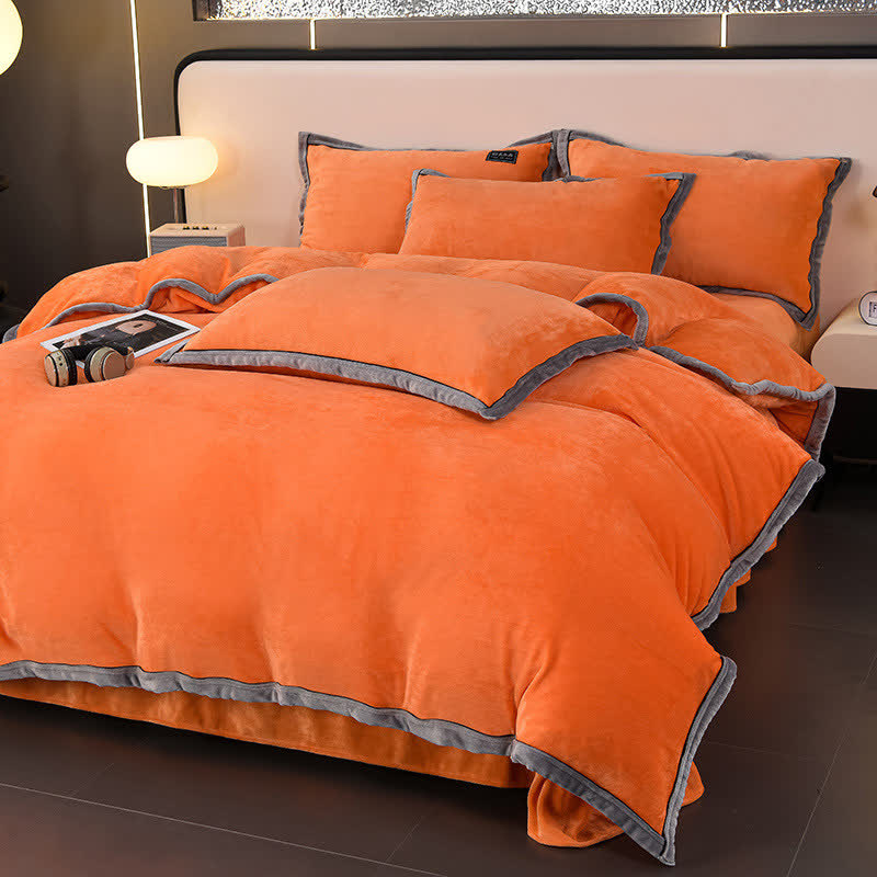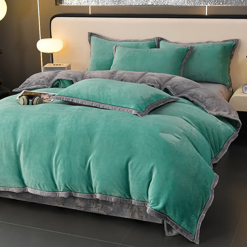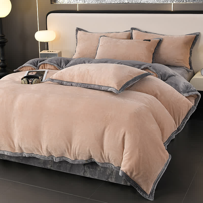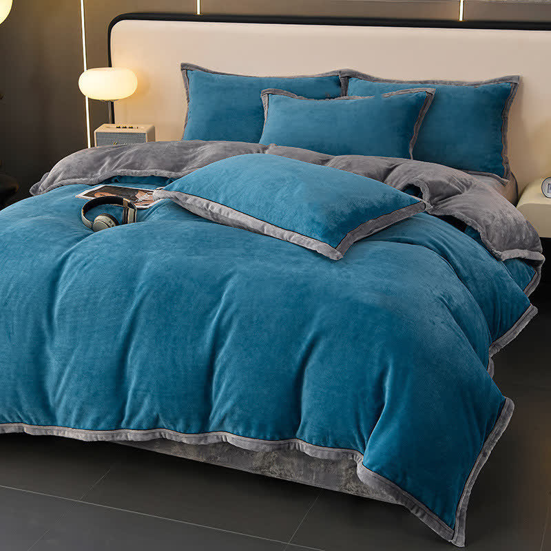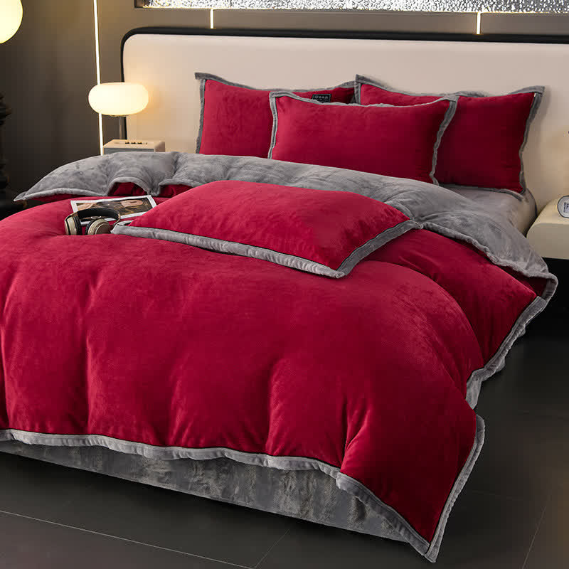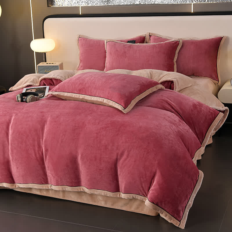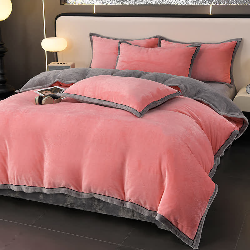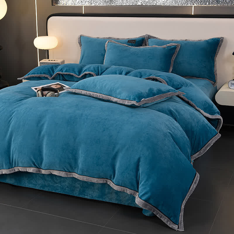 Parure de lit d'hiver en polaire de couleur unie (4 pièces)