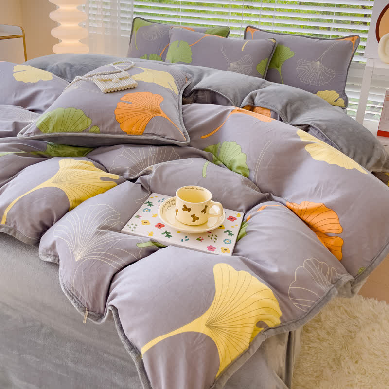 Parure de lit en coton avec feuilles de ginkgo (4 pièces)