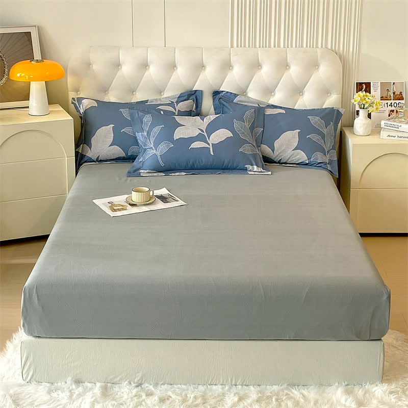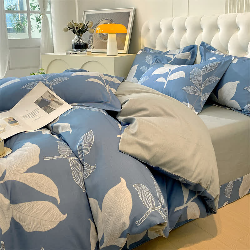 Parure de lit en coton brossé à motif botanique (4 pièces)