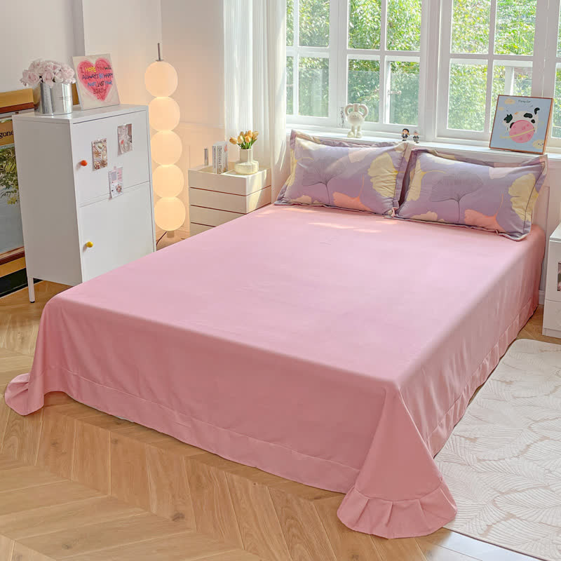 Parure de lit en coton brossé chaud à motif feuille de ginkgo (4 pièces)