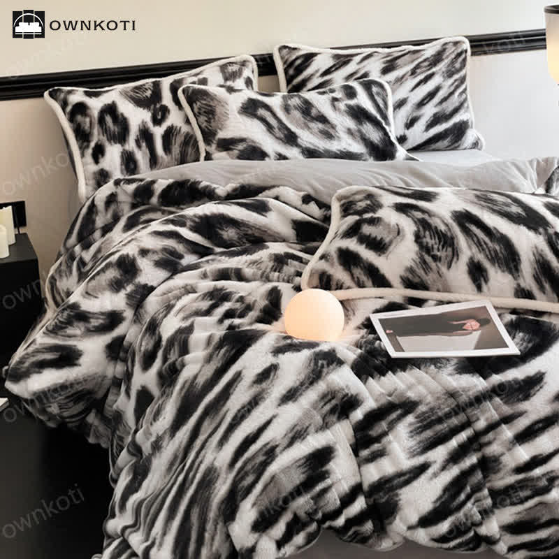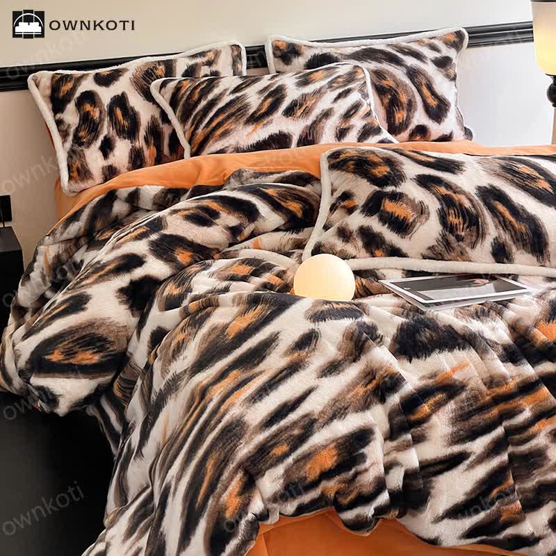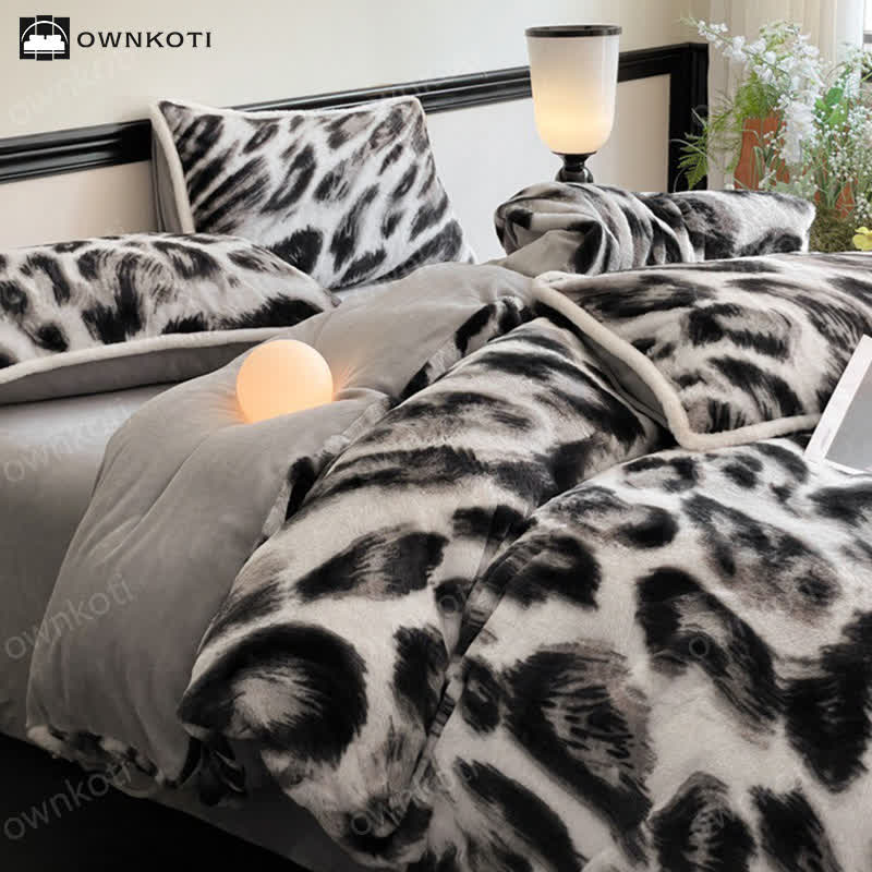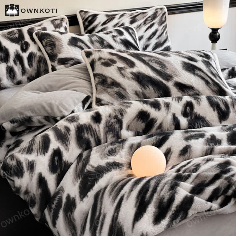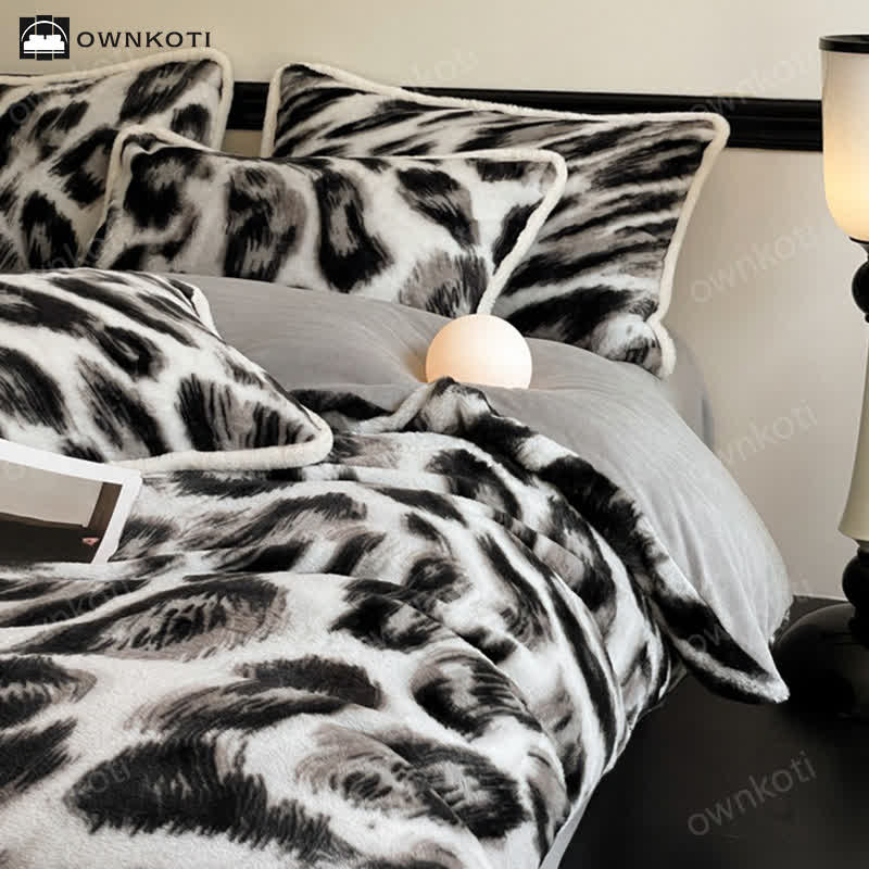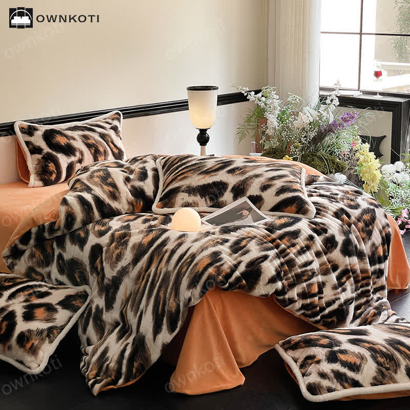 Parure de lit en flanelle douce et chaude à imprimé léopard (4 pièces)