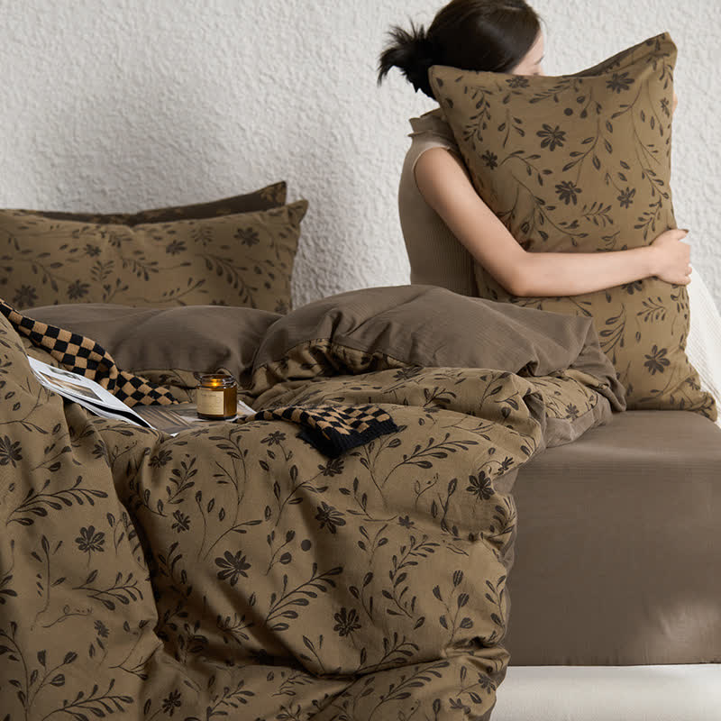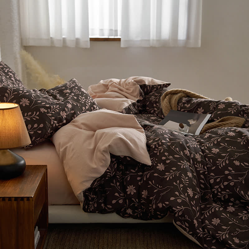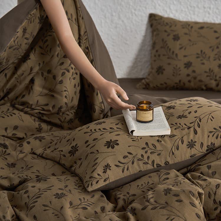 Parure de lit en gaze de coton à motif floral (4 pièces)