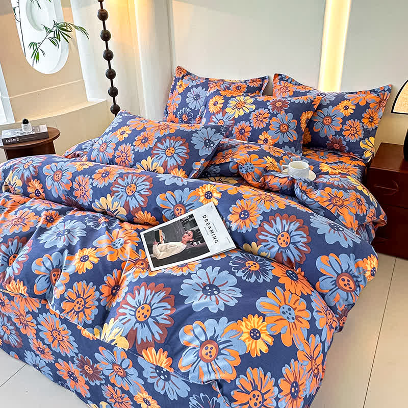 La parure de lit en gaze de coton rétro douce avec un motif marguerite allie une touche vintage à un confort douillet. Il est fait de gaze de coton respirante et légère et présente un charmant imprimé marguerite qui ajoute une touche fraîche et nostalgique à votre chambre, parfait pour un endroit détendu et joyeux pour dormir.
