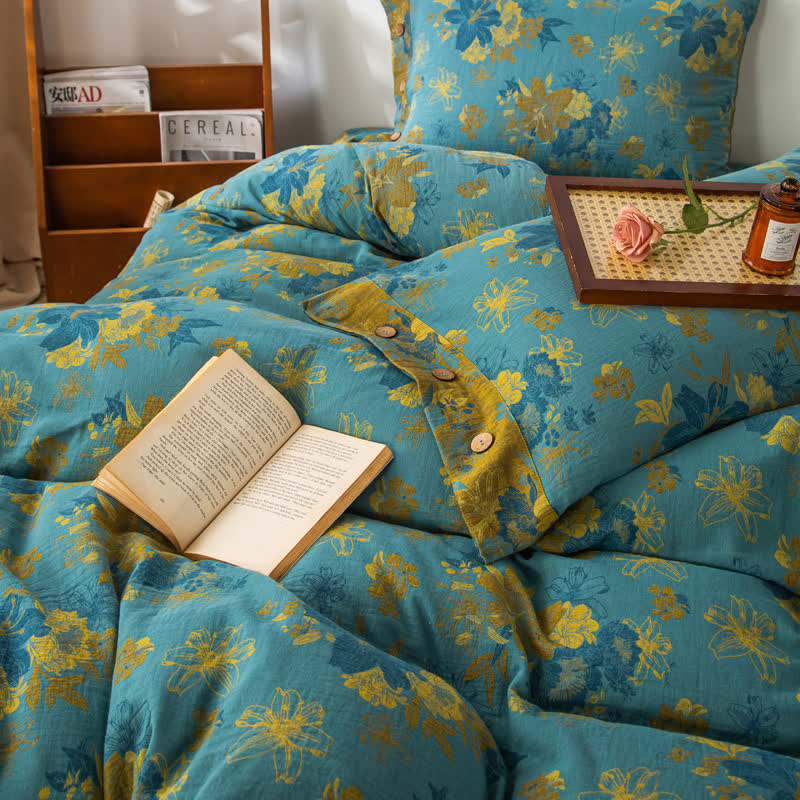 Parure de lit Lily en gaze de coton à boutons (4 pièces)