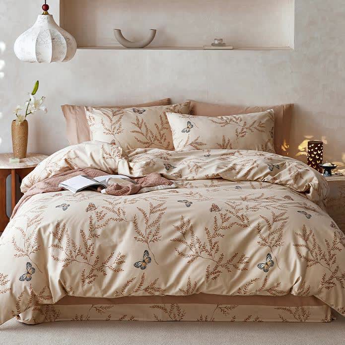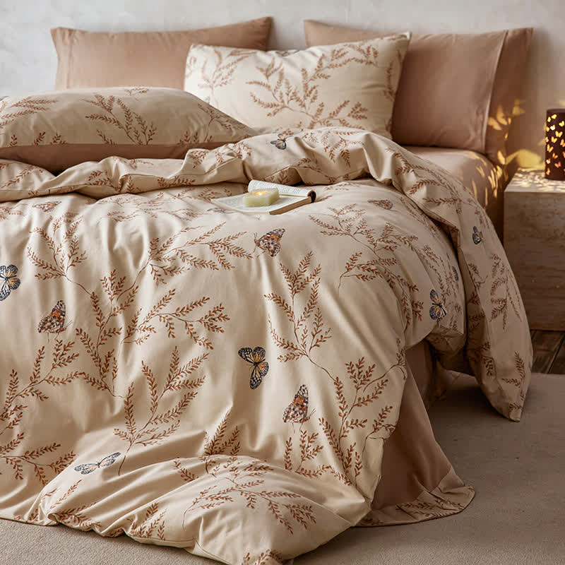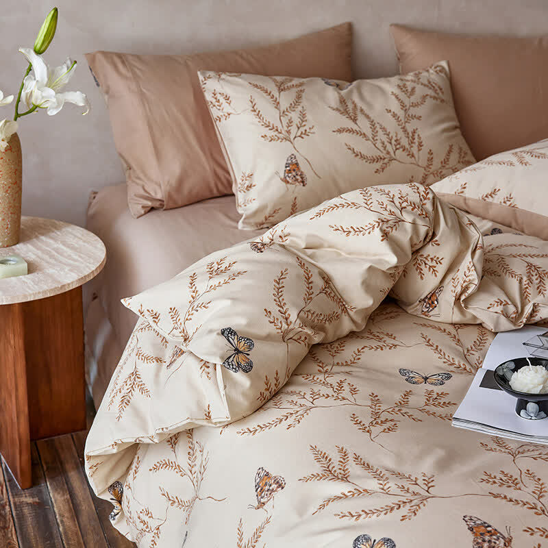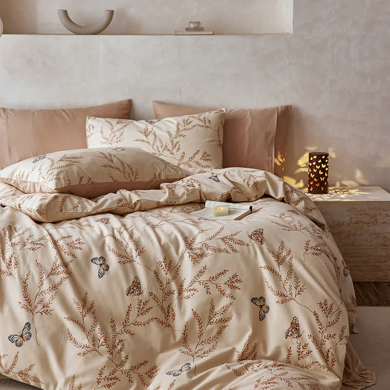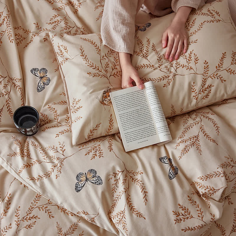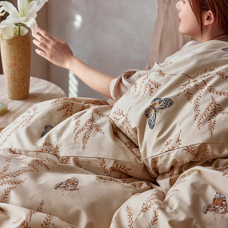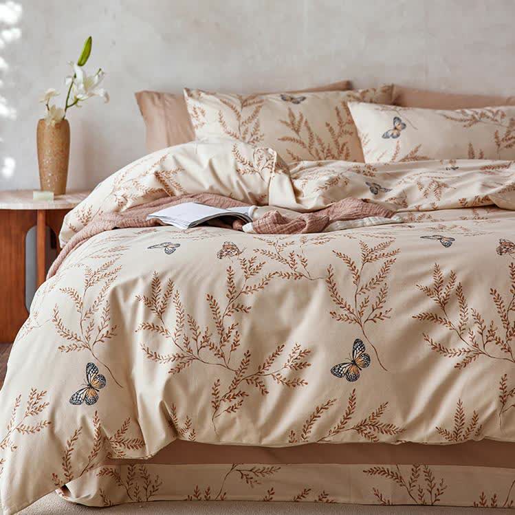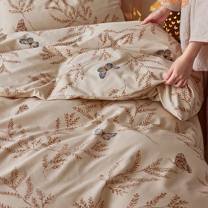 Parure de lit papillon en coton brossé de style pastoral (4 pièces)