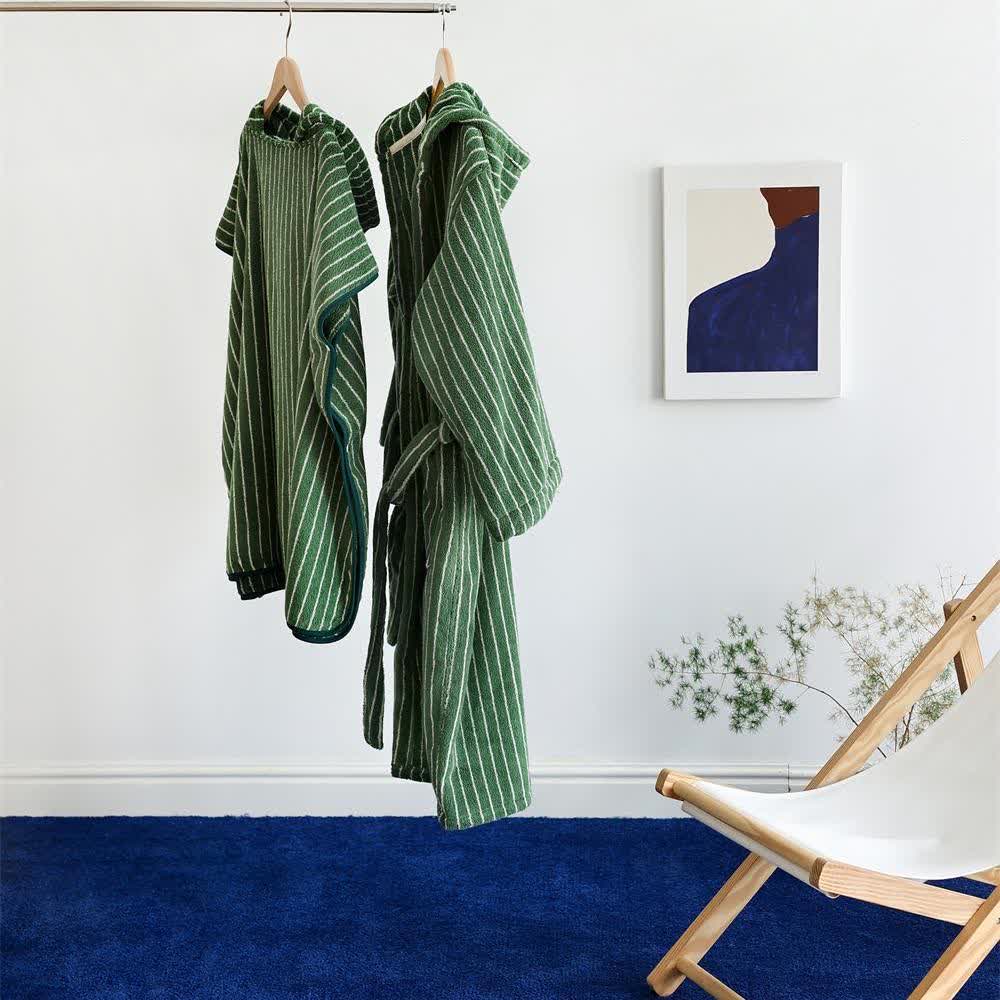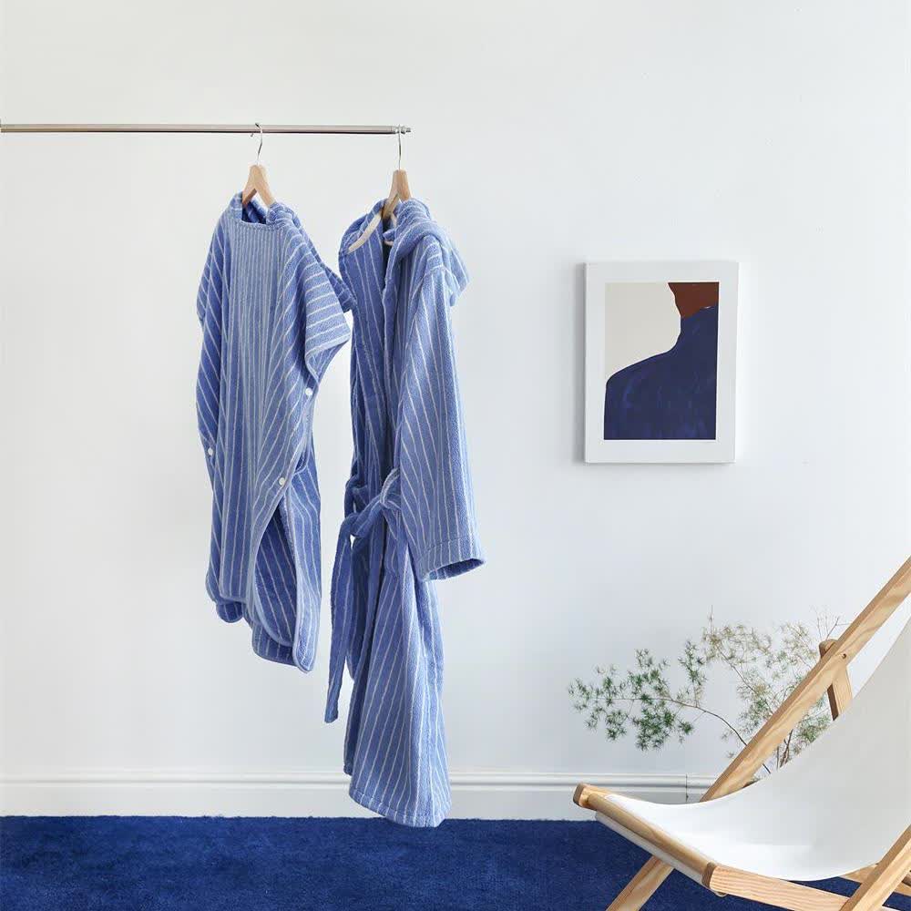 Ce peignoir en 100% coton de haute qualité vous enveloppe d'une douceur et d'une respirabilité luxueuses. Son design rayé chic lui confère une touche moderne, ce qui en fait une option élégante pour se détendre à la maison ou se rafraîchir après un bain. Il est disponible en deux tailles et convient aussi bien aux enfants qu'aux adultes.