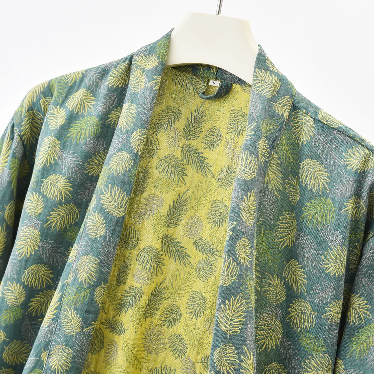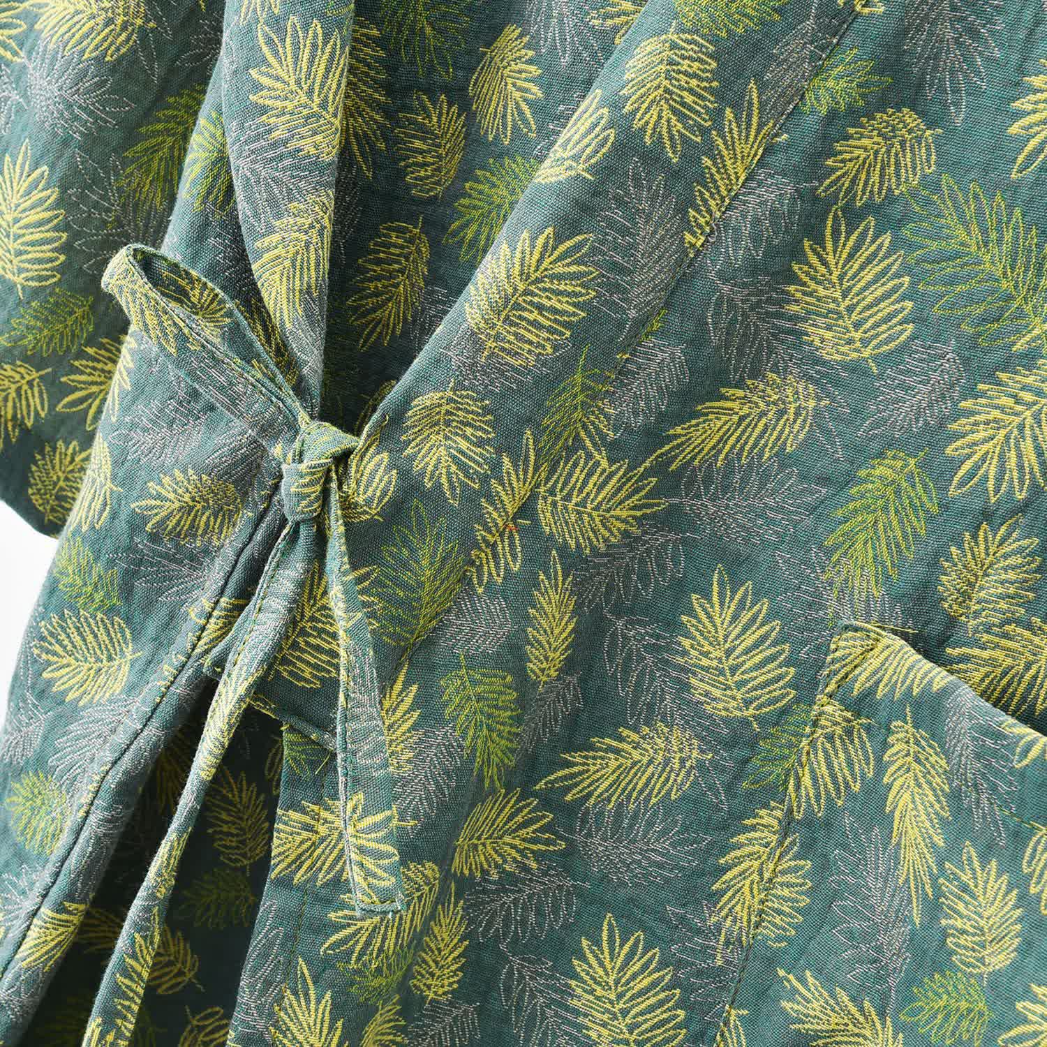 Peignoir confortable et léger en gaze de coton avec motif de feuilles