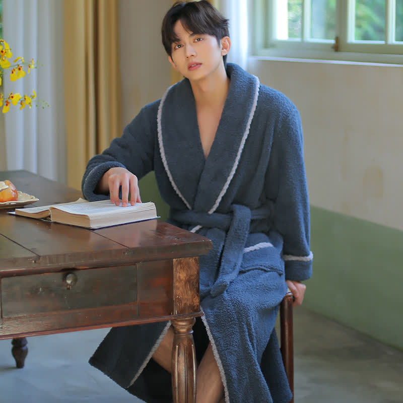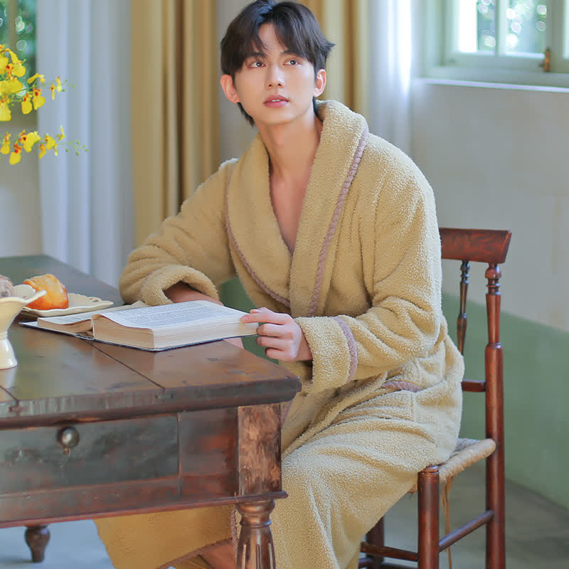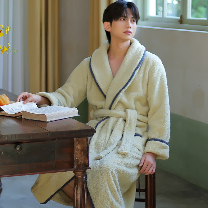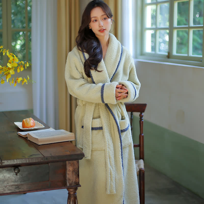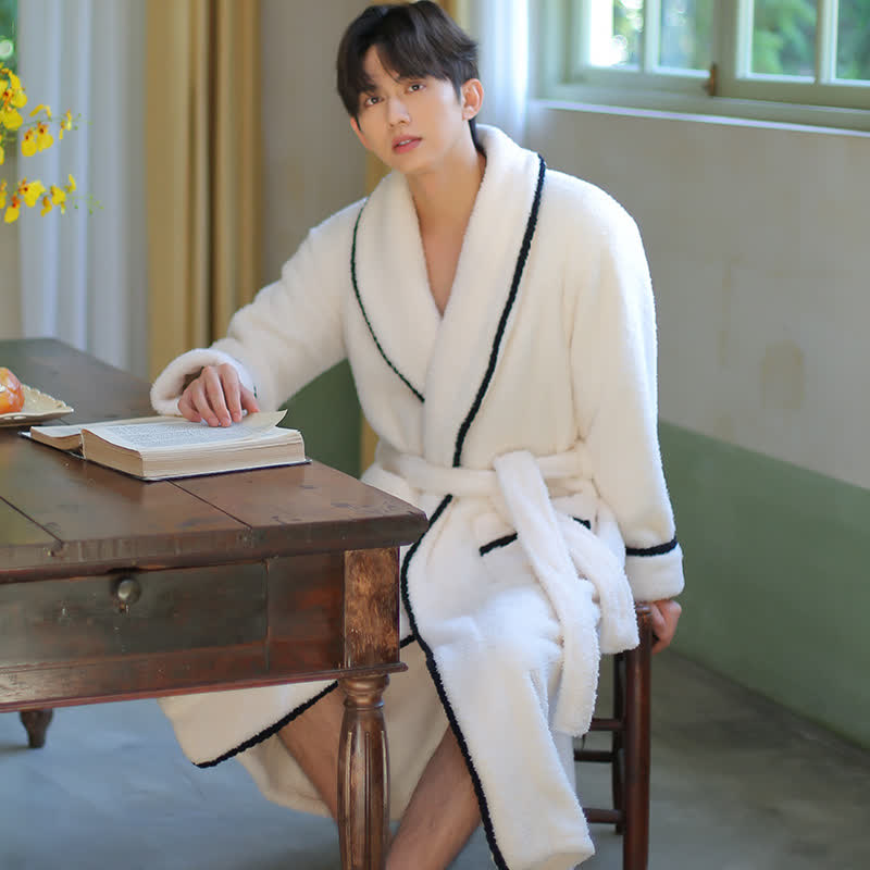 Peignoir d'hiver en polaire pour couple avec col à revers