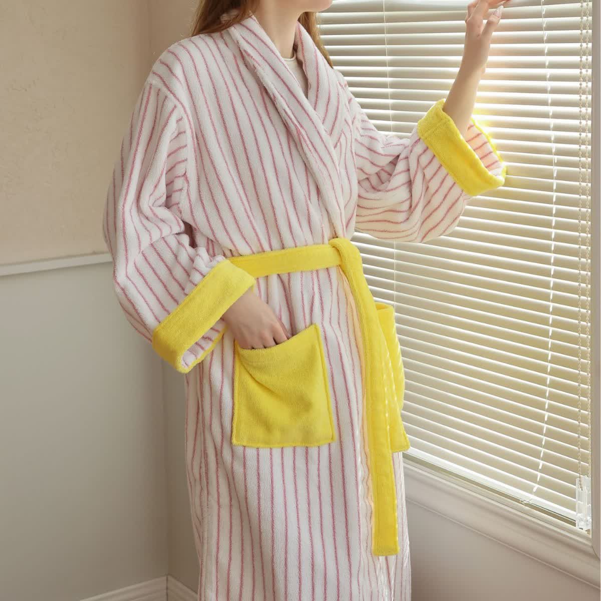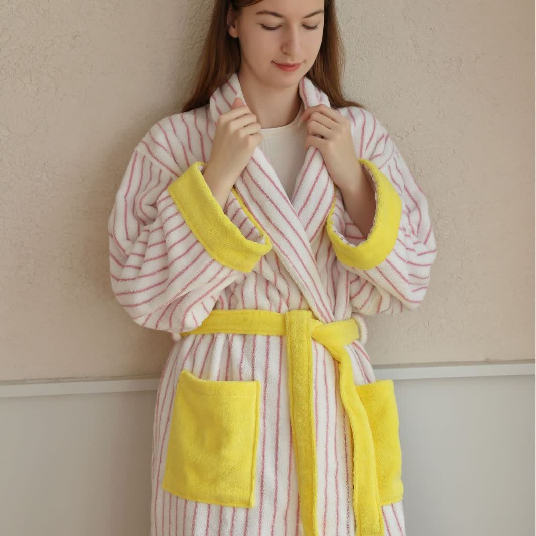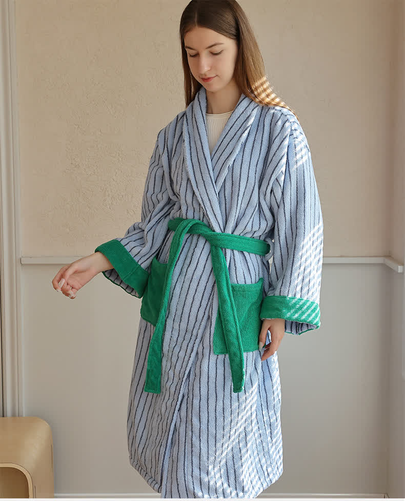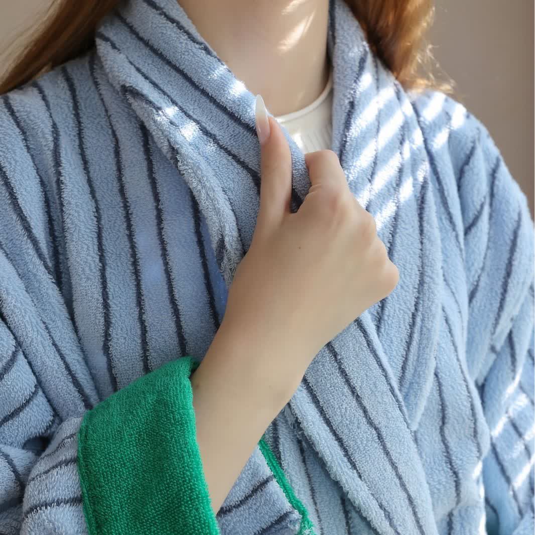 Le coton de haute qualité de ce peignoir est doux sur la peau et respirant. De cette façon, vous restez bien au chaud et confortable sans surchauffer. Avec son charmant design rayé, il allie sans effort simplicité et fonctionnalité. Que vous profitiez d'une matinée relaxante, que vous sortiez de la douche ou que vous vous détendiez le soir, ce peignoir élégant est le compagnon idéal de vos rituels quotidiens. Des serviettes adaptées à chaque besoin.