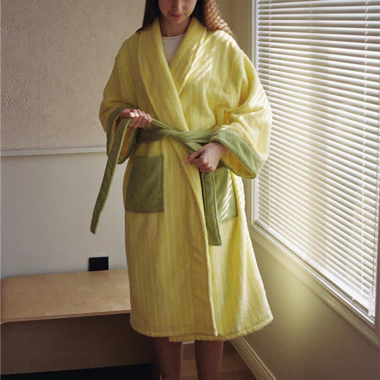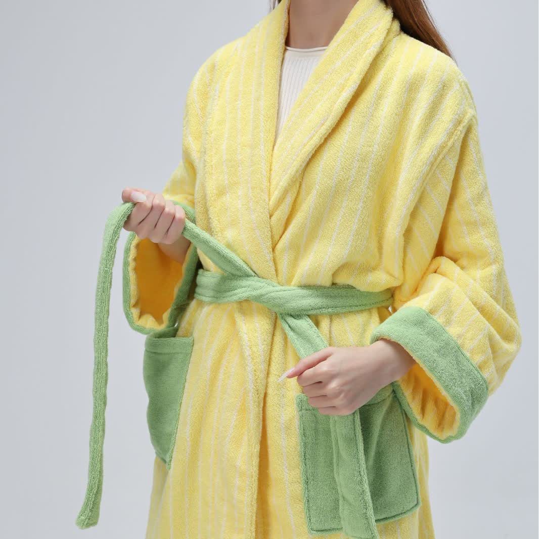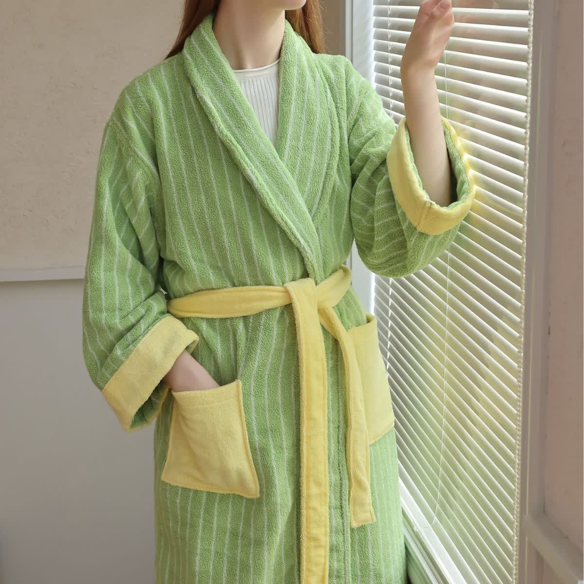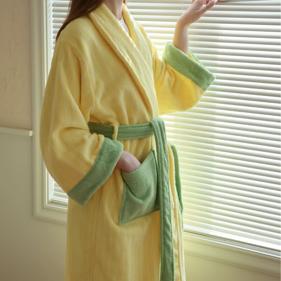 Le coton de haute qualité de ce peignoir est doux sur la peau et respirant. De cette façon, vous restez bien au chaud et confortable sans surchauffer. Avec son charmant design rayé, il allie sans effort simplicité et fonctionnalité. Que vous profitiez d'une matinée relaxante, que vous sortiez de la douche ou que vous vous détendiez le soir, ce peignoir élégant est le compagnon idéal de vos rituels quotidiens. Des serviettes adaptées à chaque besoin.