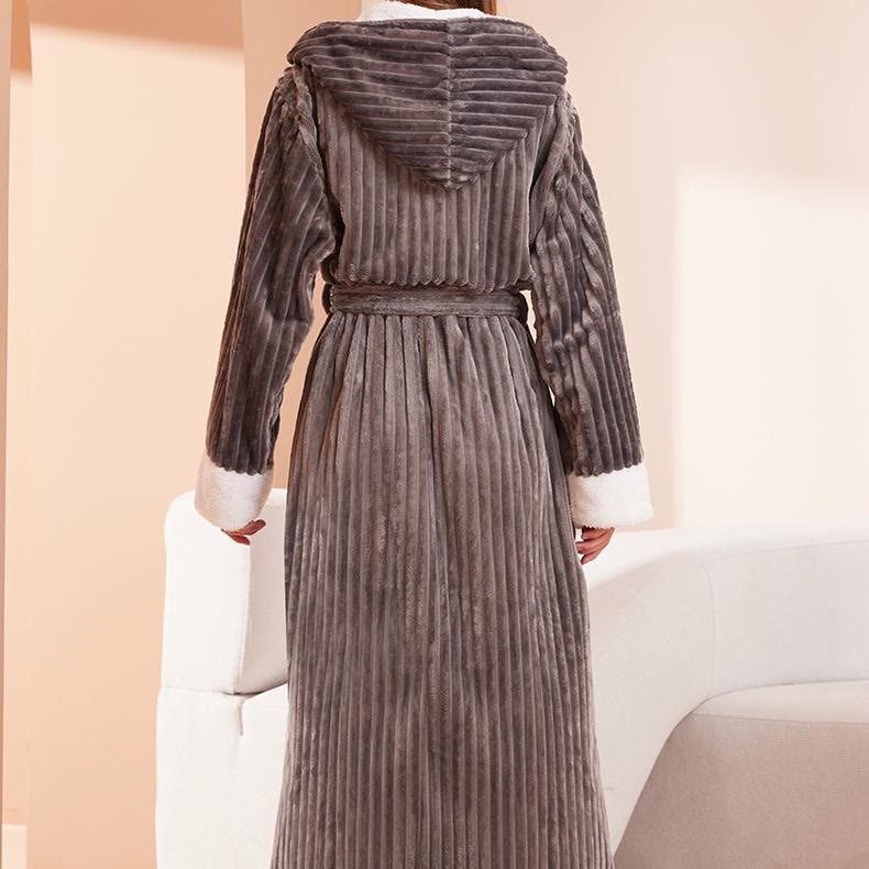 Ce peignoir en polaire luxueuse et douce offre un confort et une convivialité inégalés. La structure frappante des lignes verticales crée un look intéressant.
