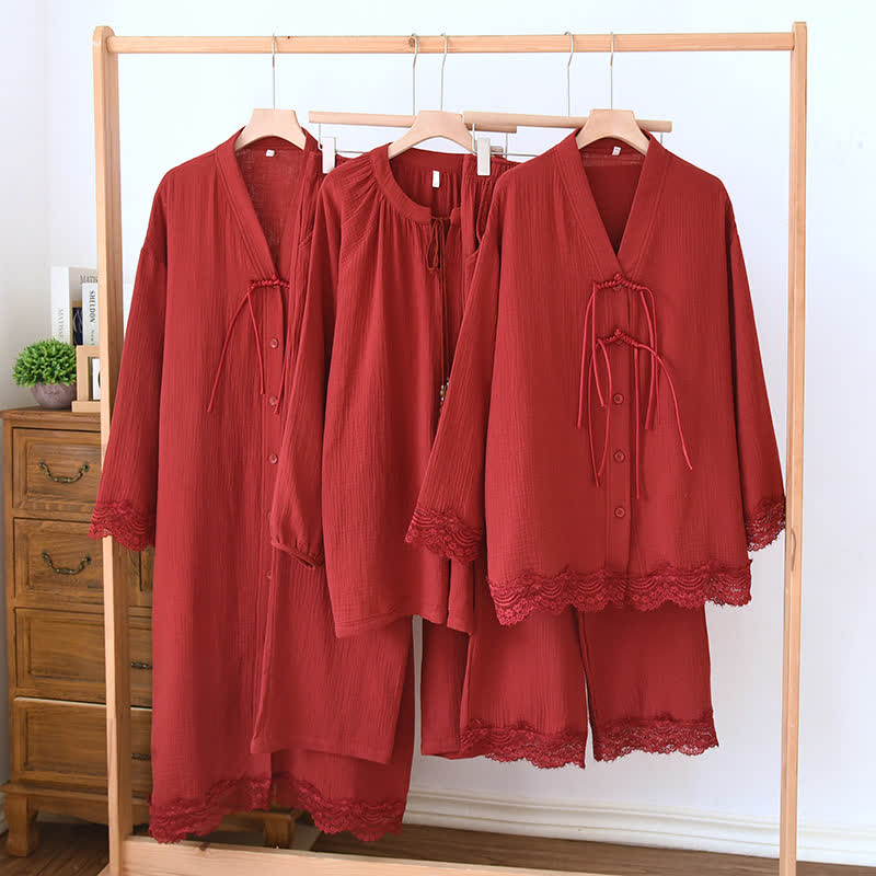 Fabriqué en gaze de coton douce et respirante, cet ensemble de pyjama présente une conception unique à double couche qui offre un confort et une convivialité exceptionnels. Le ton rouge vif ajoute une touche élégante à vos vêtements d'intérieur et les rend idéaux pour les soirées détendues ou pour se détendre. Grâce aux différents styles disponibles, vous pouvez facilement trouver l'option parfaite pour vos besoins et vos préférences.