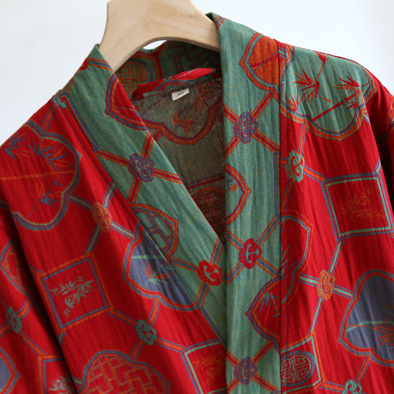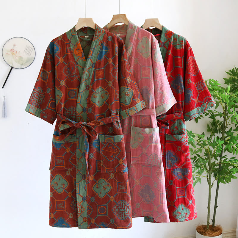 Les élégants motifs rétro confèrent à ce peignoir un charme intemporel et garantissent qu'il conservera son attrait élégant au fil du temps. Grâce à sa coupe ample, il flatte sans effort toutes les silhouettes. Fabriqué en pur coton de haute qualité, il offre une respirabilité, une douceur et un confort inégalés, ce qui le rend léger et idéal pour un usage quotidien.