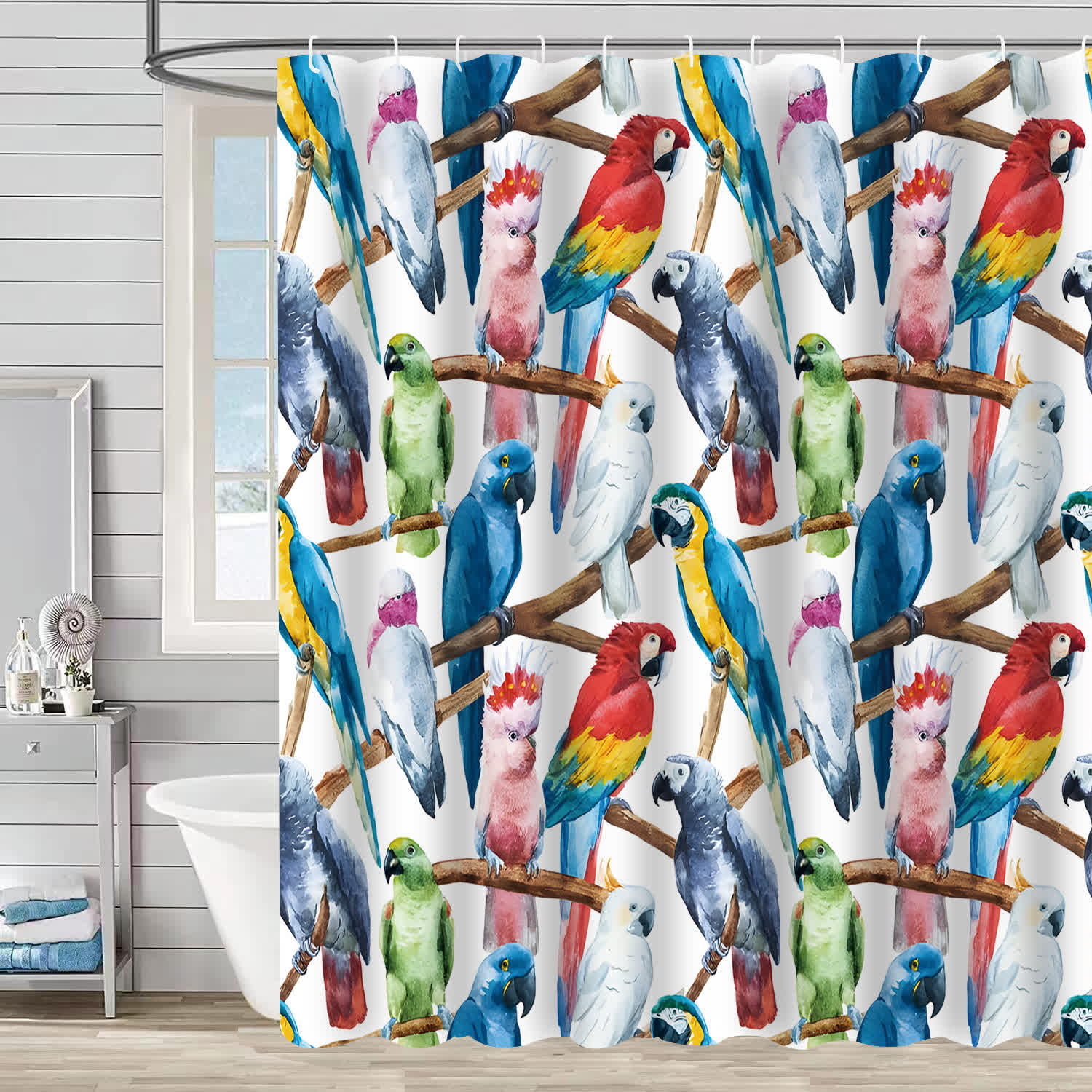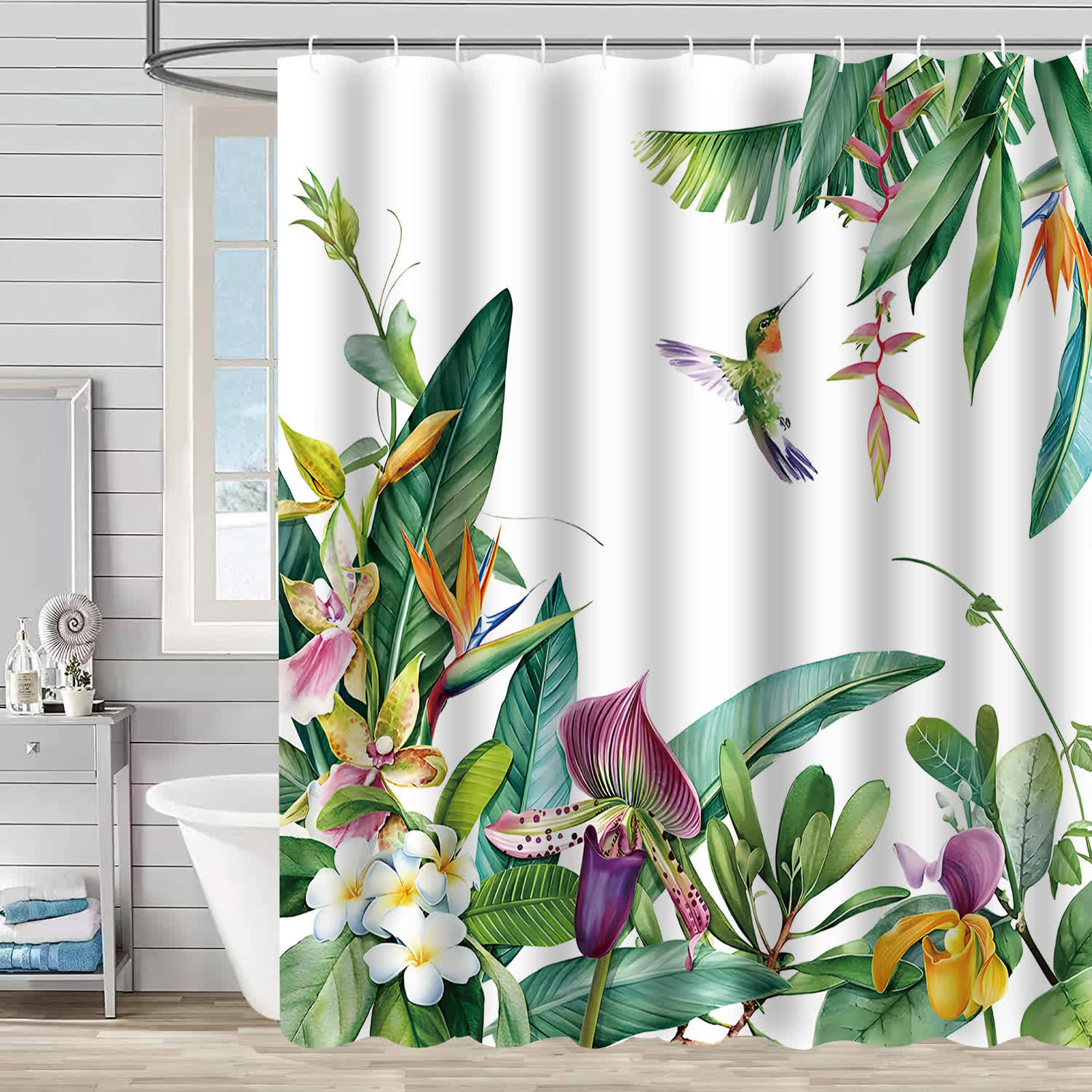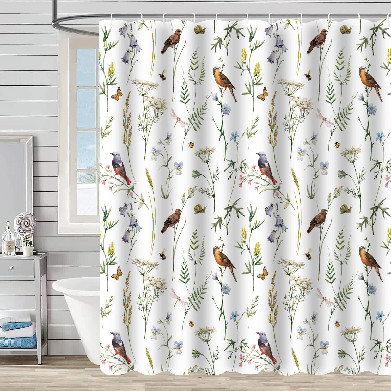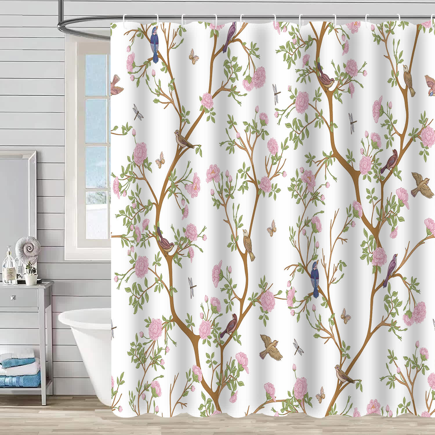 Rideau de douche décoratif imperméable avec fleurs et oiseaux