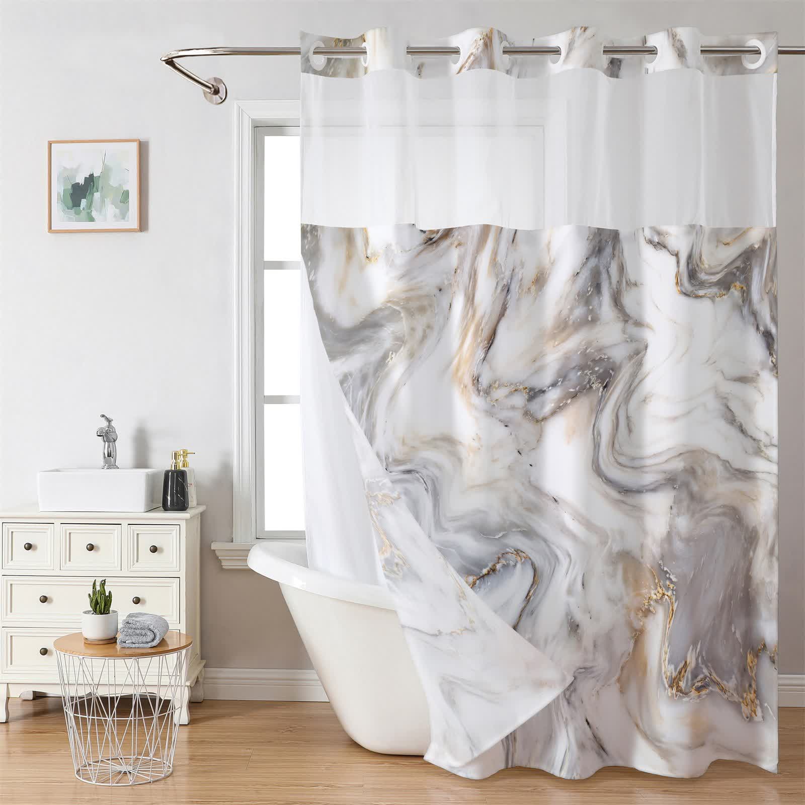 La structure élégante en marbre crée une esthétique chic et moderne et crée un accroche-regard élégant dans votre salle de bain. La conception à double couche augmente la durabilité et ajoute de la profondeur à votre décor. Ce rideau de douche en tissu imperméable de haute qualité protège contre les éclaboussures d'eau et la formation de moisissures, garantissant un environnement frais et propre.